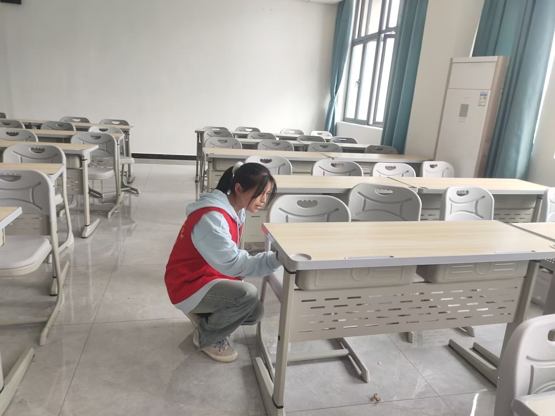 巡查过程中,支队成员低头弯腰,不放过教室的任何一个地方,会将椅子一个个搬出来,对桌兜进行全面扫描,扫描结束后,再将椅子放回原位,保持教室的整洁,然后对所寻到的失物进行特写拍照,并标注拾得地点,再将照片统一发送给小组代表,避免混乱,最后再将所有失物带回值班室。拍照的同学需在支队成员巡楼时将队员的志愿瞬间拍下来,最后还会给小组拍合照,将助人为乐的快乐记录下来。