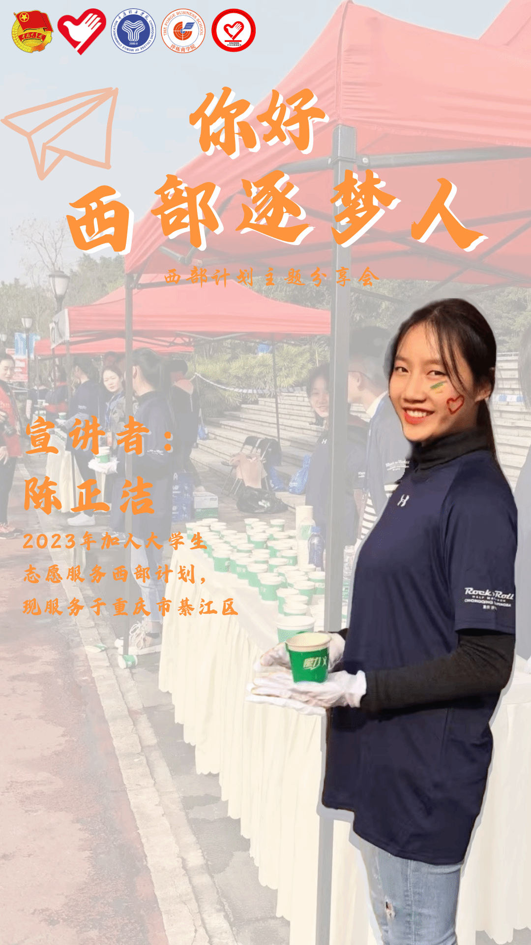 “青年当有志,立志在四方,祖国需要处,皆是我故乡”。本次分享会有幸邀请到投身于西部计划的学长学姐,为同学们分享自己的经历。学姐学长们满怀抱负、心怀梦想,积极响应国家号召到西部去、到基层去、到祖国最需要的地方,去投身新时代新征程西部建设,开启青春与志愿的“双向奔赴”!同时也向同学们分享在基层工作的照片视频,让同学们切身体验到为人民群众服务的基层之中,诉说生动的西部计划生活,鼓励同学们:“到西部去,到祖国最需要的地方去。