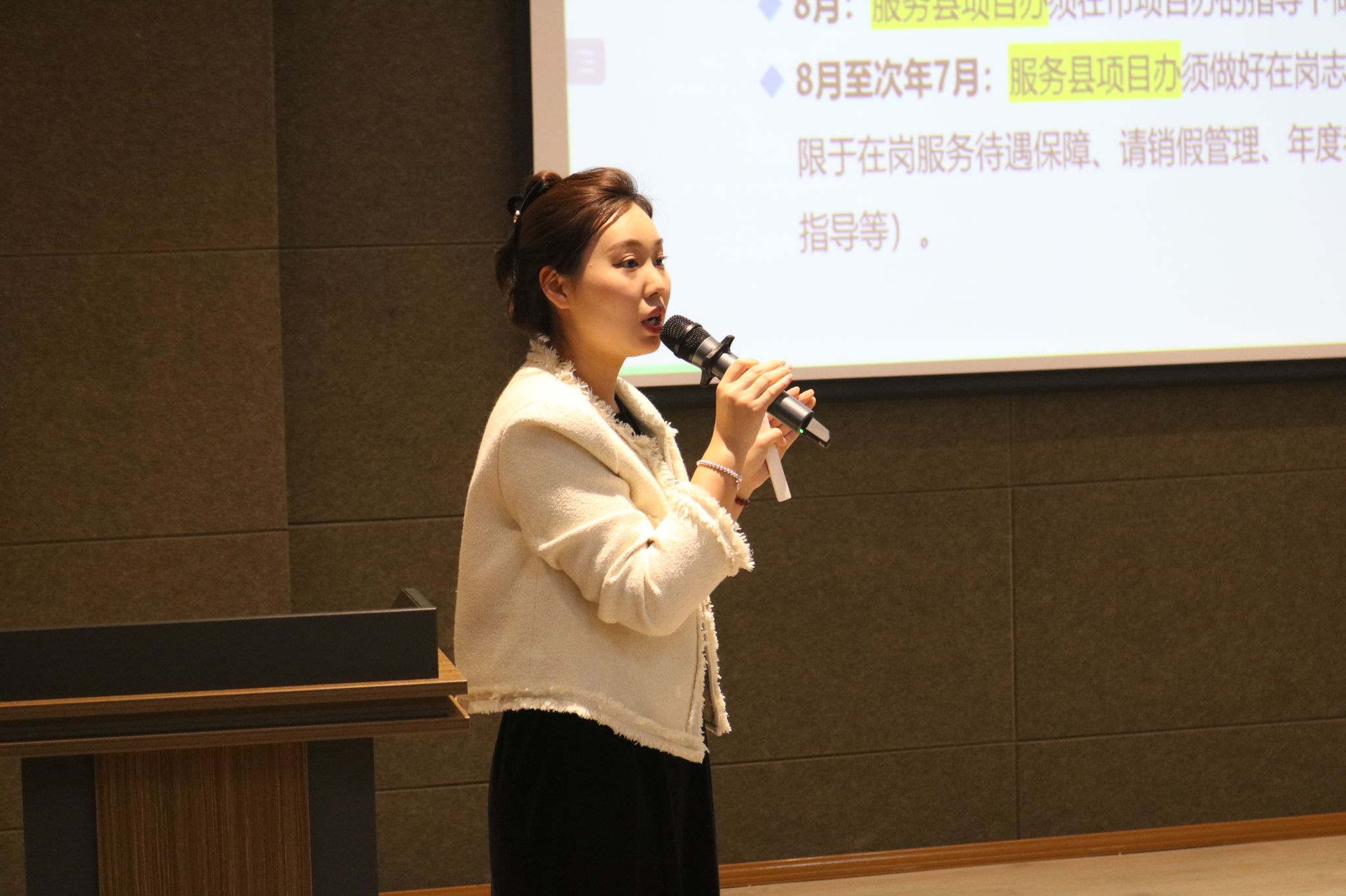 校团委青联指导老师徐一丹结合最新的西部计划政策,从近年的招募对象、招募条件、招募专项、招募流程、选拔方式、政策保障、志愿者补贴、志愿者保险、期满优惠政策、服务管理及宣扬志愿服务精神等多方面进行了详细地说明。同时,徐一丹老师从时间安排,加分政策等方面介绍了我校西部计划招募时间节点、招募相关的流程包括相关上交材料的要求,鼓励同学们在毕业之际多元的选择下,积极报名参加西部计划,并希望同学们能以“奉献、友爱、互助、进步”的志愿精神,用短暂珍贵的时间,做一件终生难忘的事。