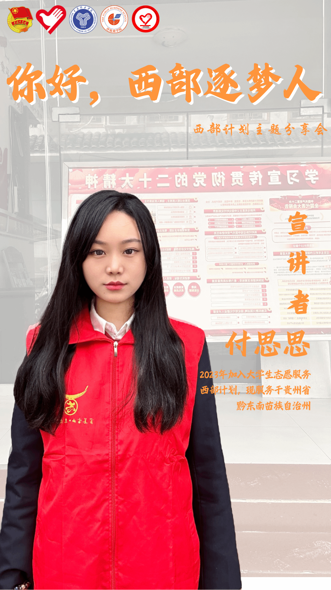 源于西部,回到西部,逐梦青春,志愿向前。本次“你好,西部逐梦人”主题分享会圆满落幕。当代中国青年生逢其时,施展才干的舞台无比广阔,实现梦想的前景无比光明。祖国的西部处处都是当代青年实现梦想的原野,西部计划可以把个人的理想和国家发展结合起来,坚持与祖国同行、为人民奉献,以青春梦想、用实际行动为实现中国梦作出新的更大贡献。以吾之躯,为国效劳,希望在未来有更多的青年加入西部计划志愿者队伍,全力服务乡村振兴战略,充分发挥自己的专业知识和技能,实现个人价值和社会价值的双重提升。