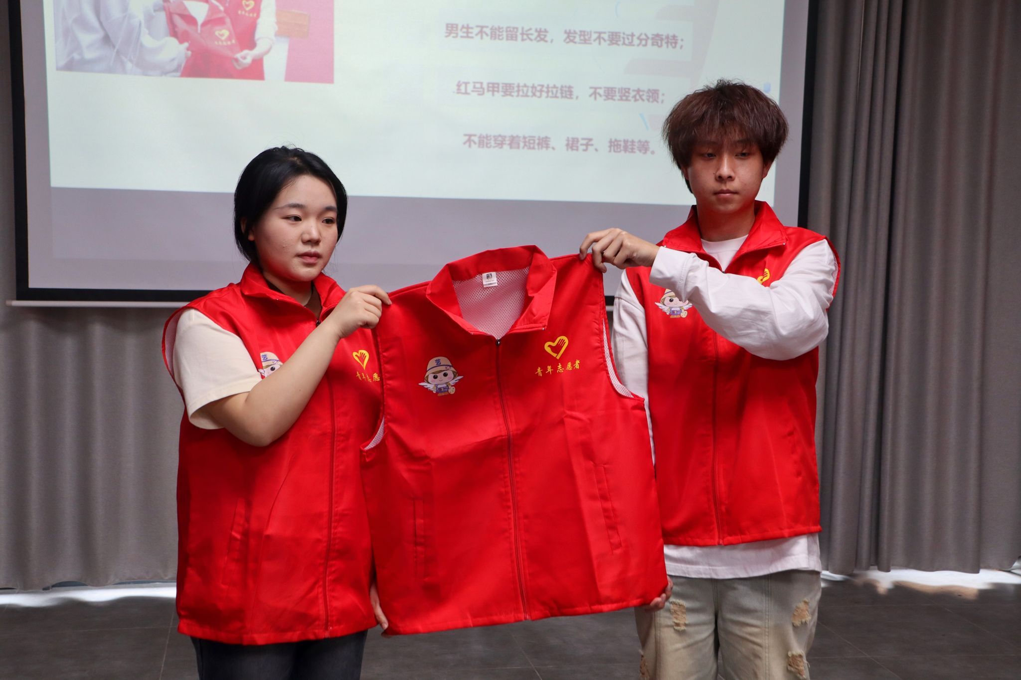 万象更新,共赴前程。培训会上,花果培训人员廖小军首先为在场人员们介绍了在新学期新增的河小清志愿服务专项支队和春蕾课堂志愿服务专项支队。新支队的成立象征着艺术传媒学院青年志愿者协会的成长。新的学期有新的气象,志愿者们迎来了崭新的志愿服装,新志愿服采用了更干净鲜丽的志愿红,且在胸口处印有艺术传媒学院青年志愿者协会专属的标志。之后,培训人员对于新服装的叠放以及爱护又进行了强调,让艺术传媒学院青年志愿者协以一个良好的样貌展现在大众面前!