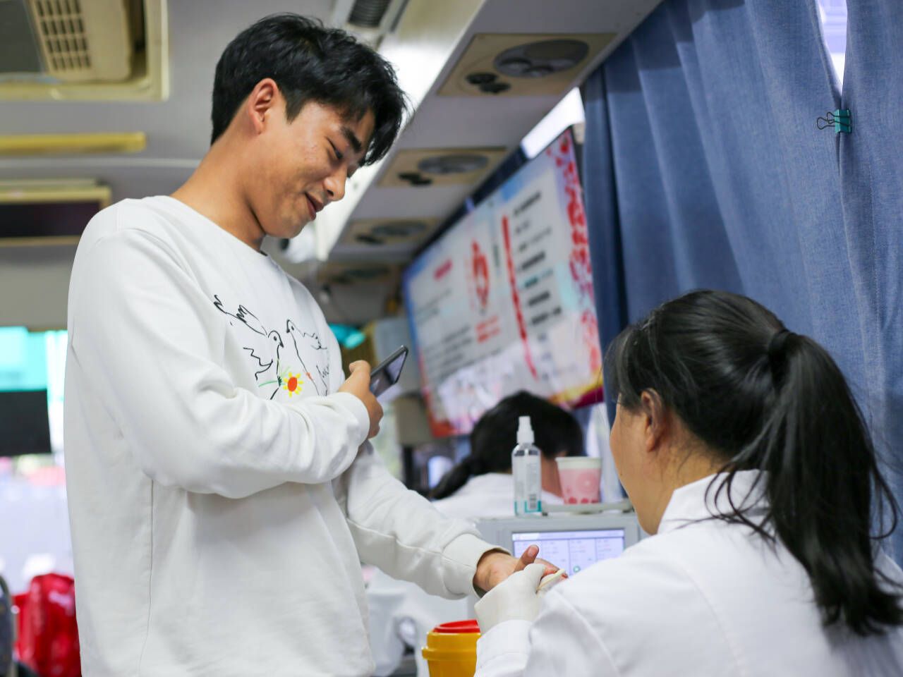 活动现场,秩序井然。各区域划分清晰,咨询台、采血区、休息区一应俱全。在志愿者引导下,同学们依次进行登记、体检、血液初筛等环节,并在检查合格后有序进入献血车。在等待献血的过程中,他们了解到无偿献血的注意事项和好处;在进行详细的体检时,医生耐心询问每一位同学的身体状况,同时科普献血后的营养饮食,让献血者在舒适的氛围中缓解紧张并舒展身心。整个献血过程尽然有序、充满生命力,同学们的脸上也洋溢着自豪的笑容。