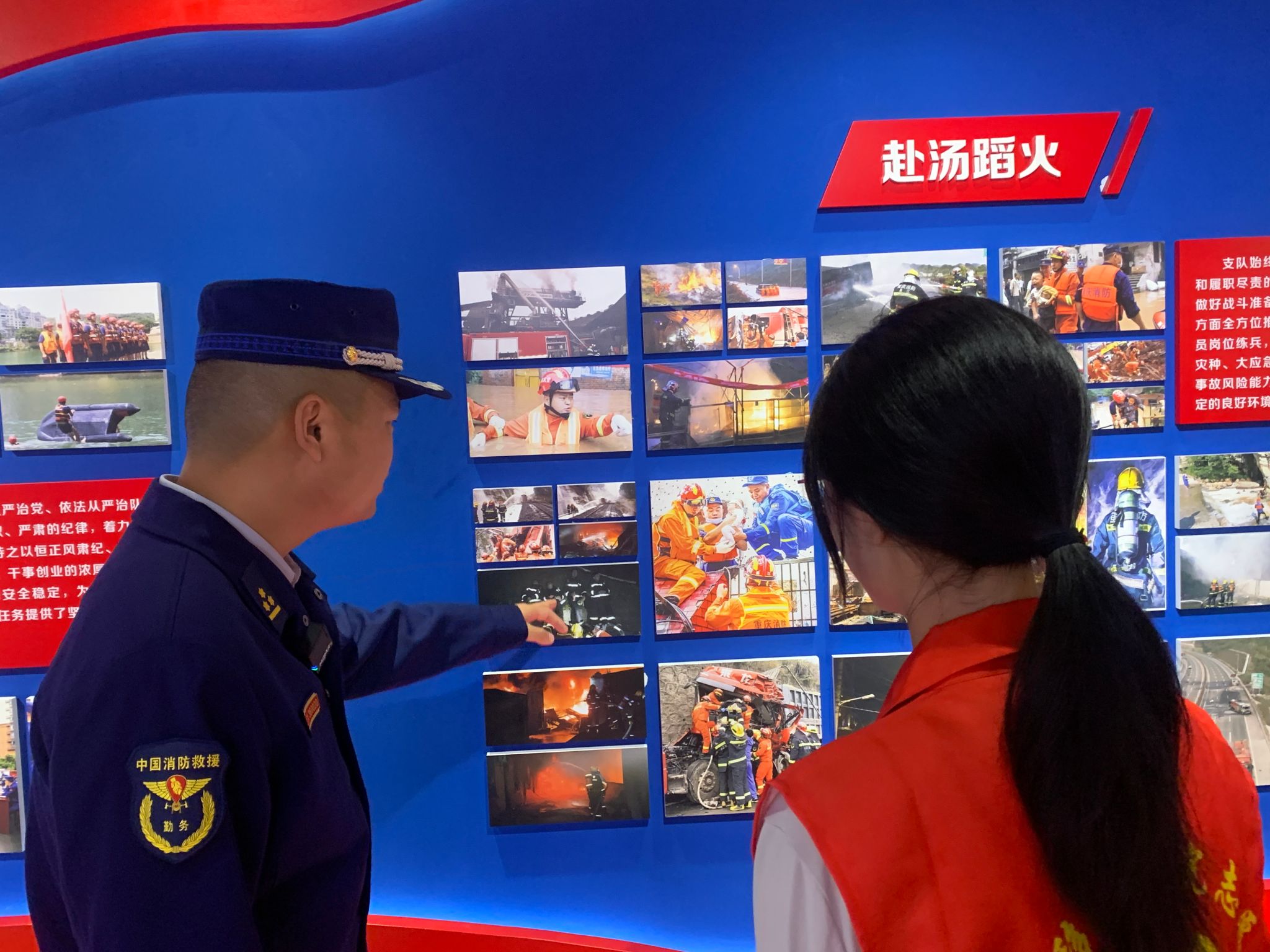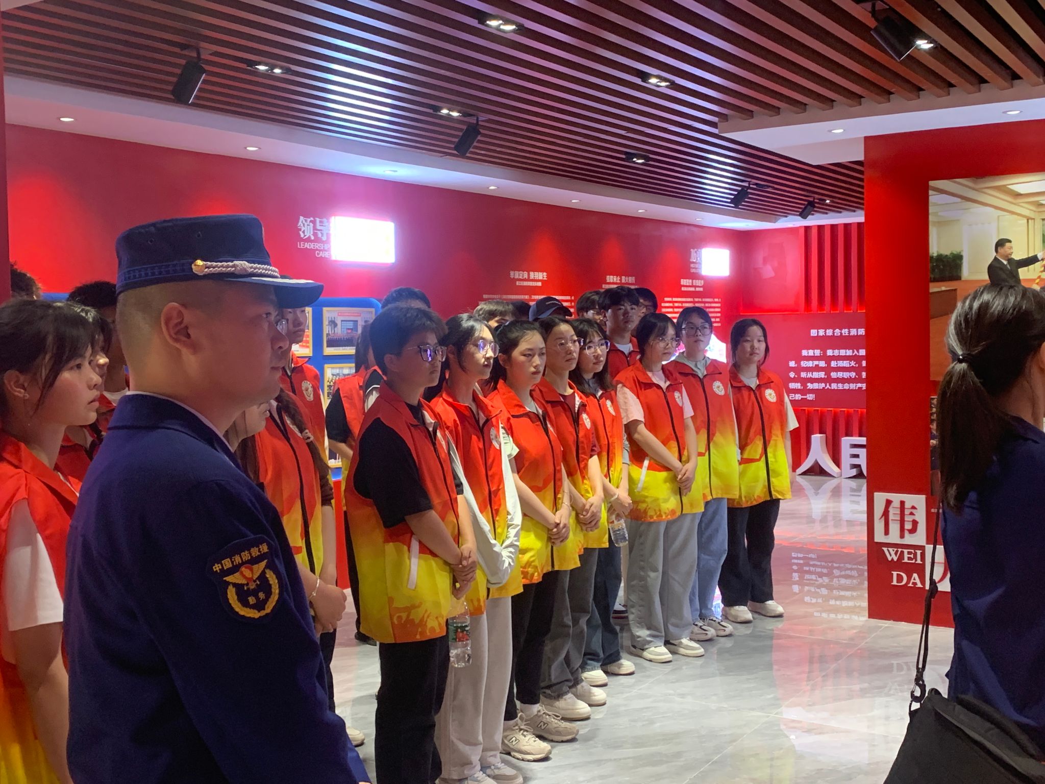 穿越消防支队庄重的门廊,映入眼帘的是习近平总书记对消防队伍崇高宗旨的精辟阐述:“对党忠诚、纪律严明、赴汤蹈火、竭诚为民”。步入三楼消防支队记史馆,四个精心设计的展区逐一展现了消防队伍自建立以来的光辉历程和卓越功绩。特别设置的展柜内陈列着烈士们生前使用过的物品,其中一把被火焰烧损的水枪头,静静诉说着英勇与牺牲。消防支队的支队长向大家深情讲述了这些物品背后的感人故事,使在场的同学们深受触动。荣誉墙上,无数消防员们获得的荣誉奖章熠熠生辉,它们默默见证着他们为保卫人民生命财产安全所付出的辛勤努力和无私奉献。