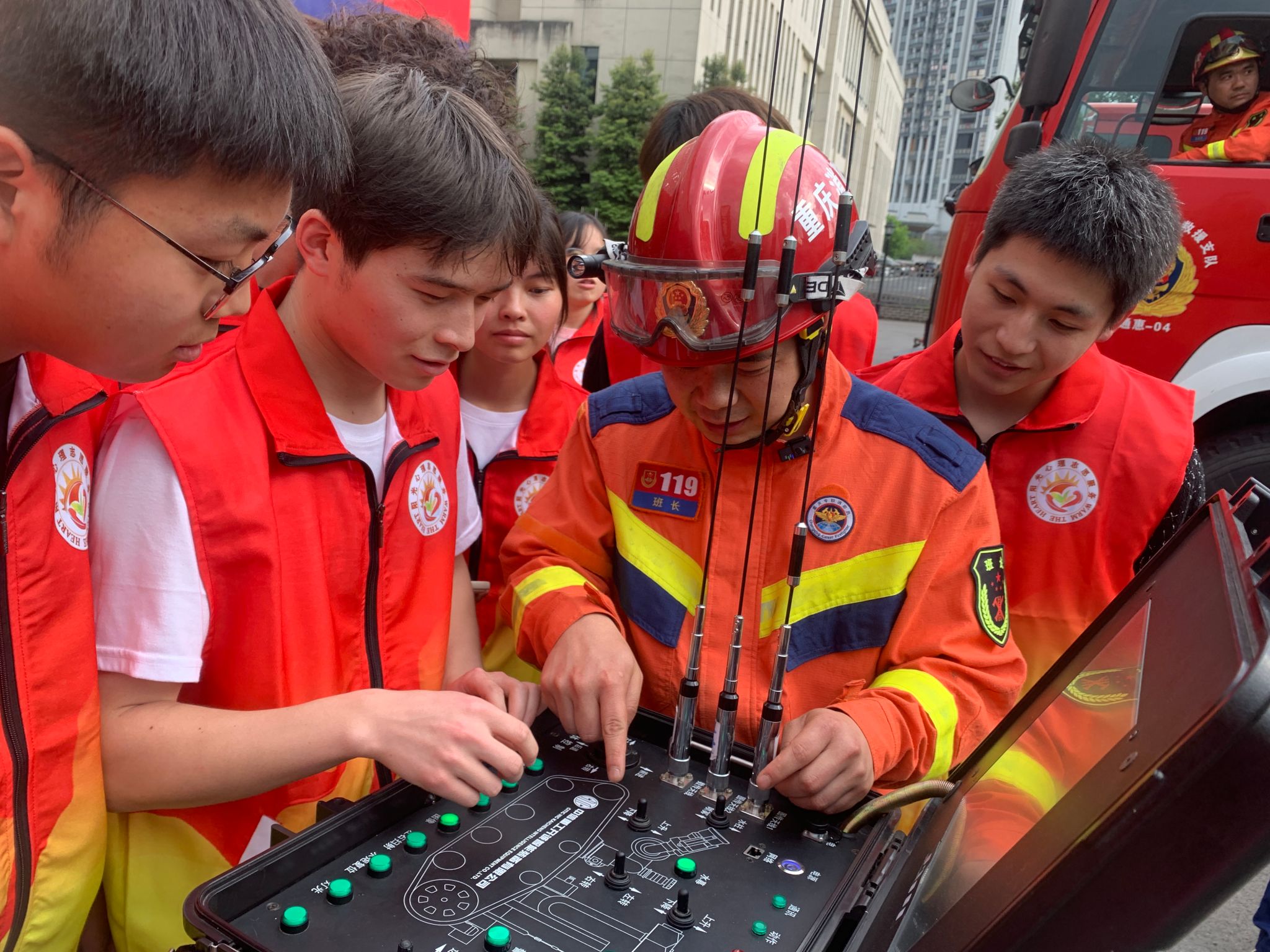 在完成消防设备的体验环节后,消防员引导同学们转移至消防车旁,为他们详细阐释了消防灭火机器人的操作要领及其重要性和实用性。其喷射水流的能力不仅强大到可以直刺云霄,而且覆盖范围广泛。消防员还邀请了各位同学亲身参与这款灭火机器人的操作,以实际感受其别具一格的功能特性。紧接着,消防员将继续引领大家深入参观消防车,并为大家提供搭乘消防车的难得机会,使同学们能够身临其境地感受成为消防员的崇高荣誉与沉甸甸的责任。