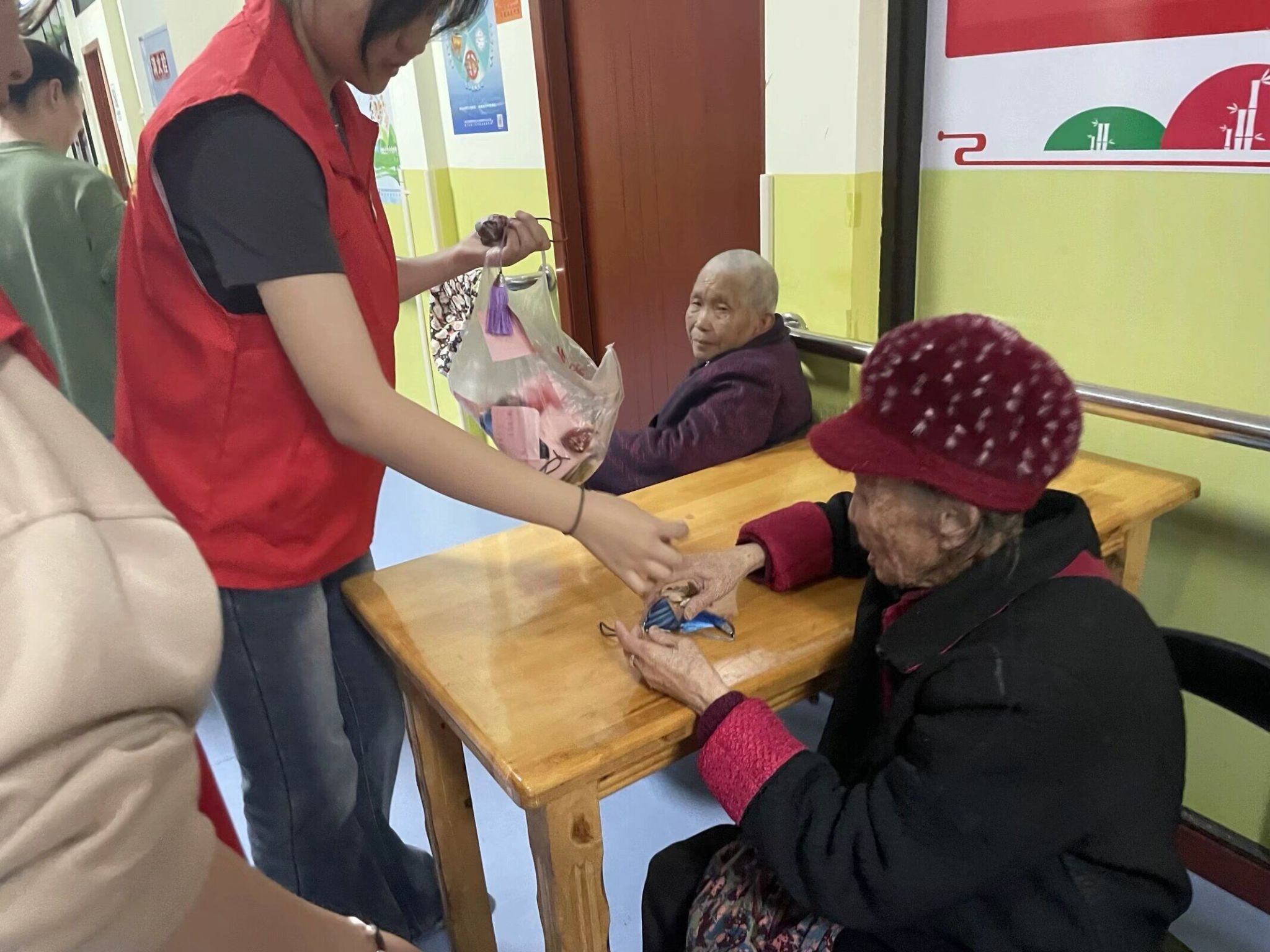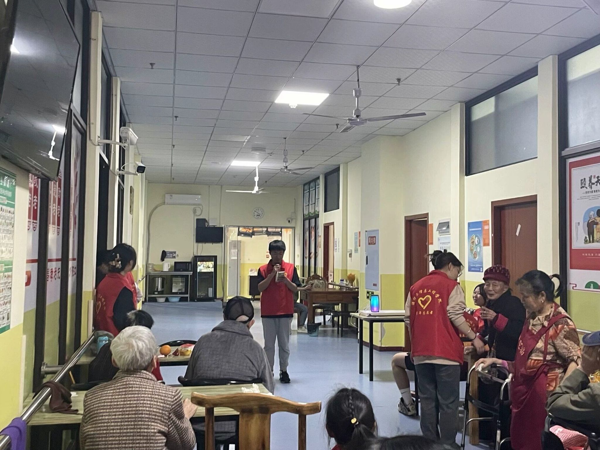 志愿者们与老人们围坐在一起,亲切地聊起了家常。志愿者们有的为老人们唱起了经典的《东方红》,勾起了他们的青春回忆;有的则讲解了戏剧中的故事情节和角色塑造,让老人们更加深入地了解了戏剧的文化内涵。大家笑声不断,气氛温馨而融洽。