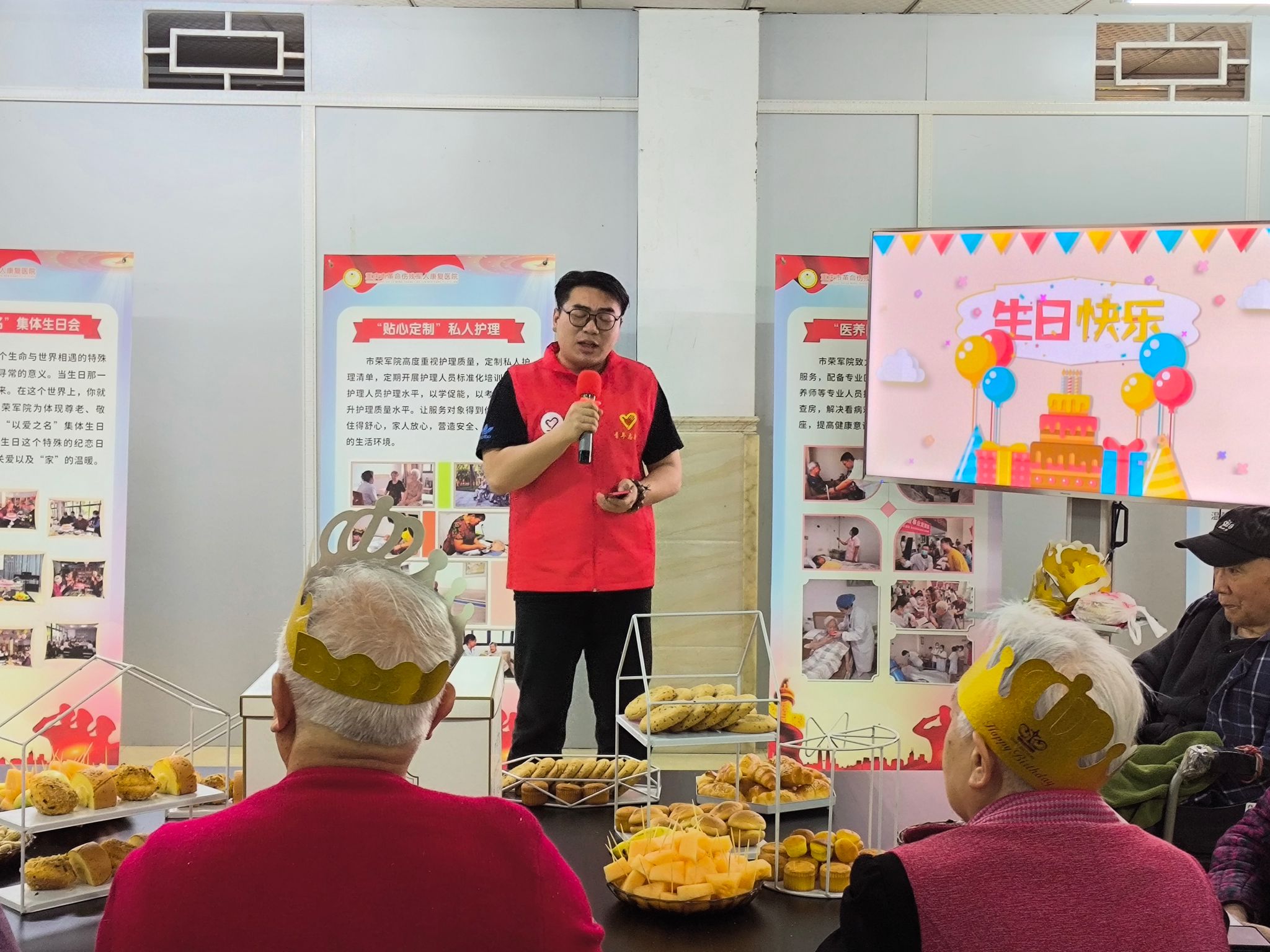 活动紧接着是由荣军院老年合唱团们的爷爷奶奶们给在场的各位带来了《康定情歌》,声声歌唱让人仿佛置身于康定的春日,邂逅一场绮丽的春日。在歌声落下的那一刻,在场的所有人鼓起了掌,齐声唱起了生日快乐歌。老年合唱团的爷爷奶奶们与志愿者小伙伴们一起表演,老兵们欢笑作一团,愈加熟络。