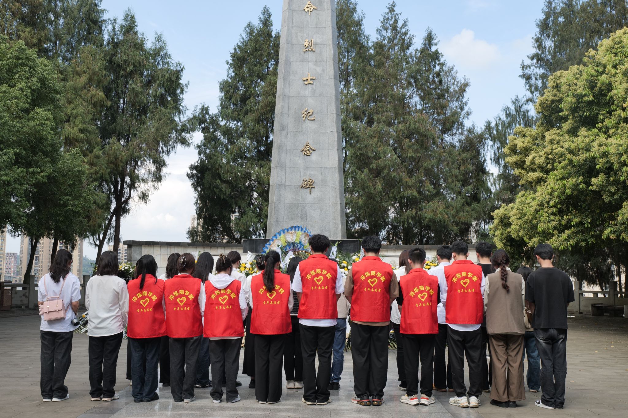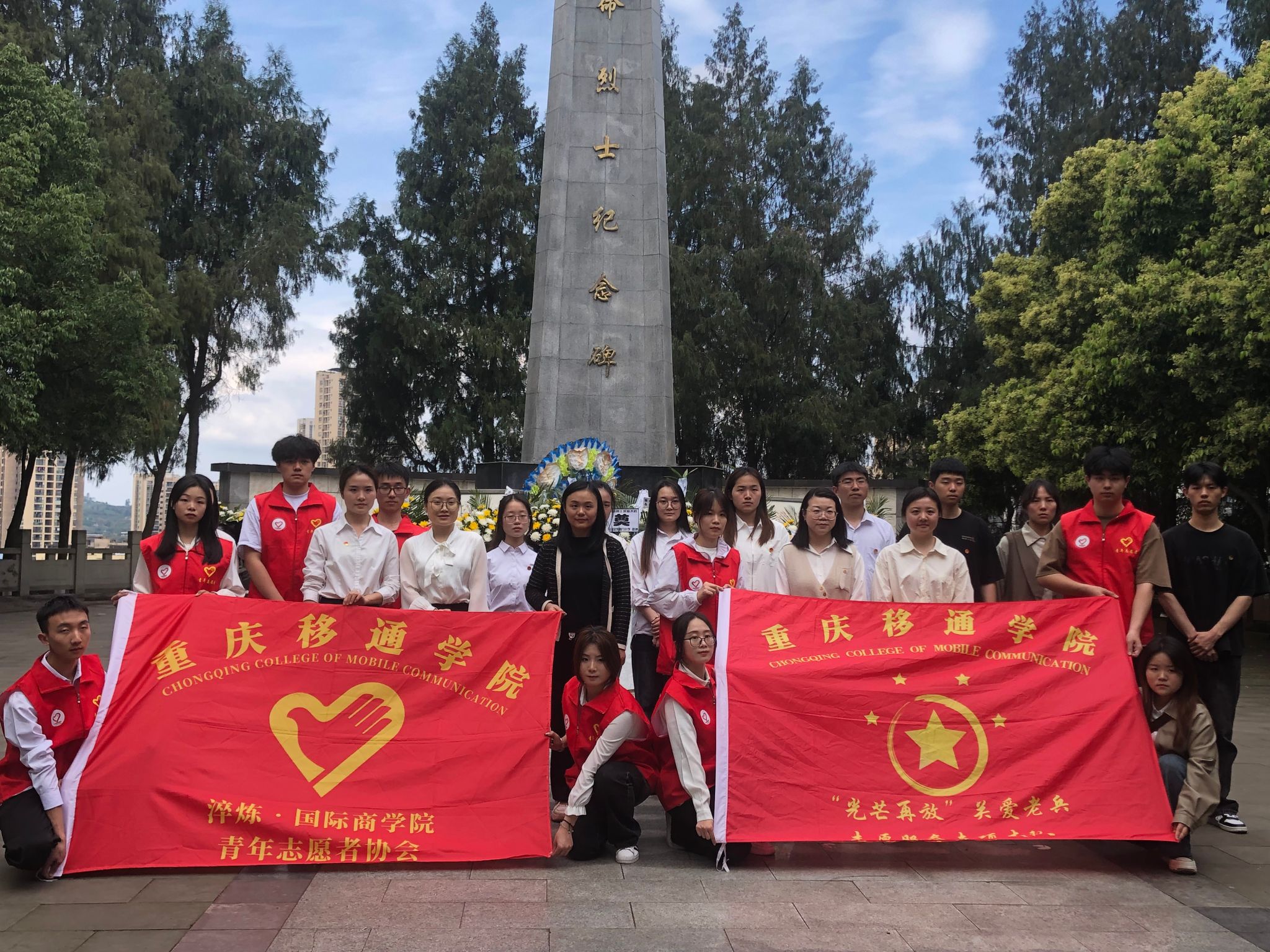 清明至,祭英魂。清明前夕,在淬炼商学院学工副院长刘薇唯、团总支书记黄新燕的带领下,淬炼商学院青年志愿者协会联合淬炼商学院党支部师生党员志愿者于2024年4月3日前往合川区人民公园革命烈士纪念碑举办“清风寄相思·志愿传温情”清明祭扫纪念活动,以表达对革命先烈、民族英雄与前辈楷模的哀思与怀念,激励师生铭记红色历史、继承光荣传统,为实现中华民族伟大复兴的中国梦不懈奋斗。