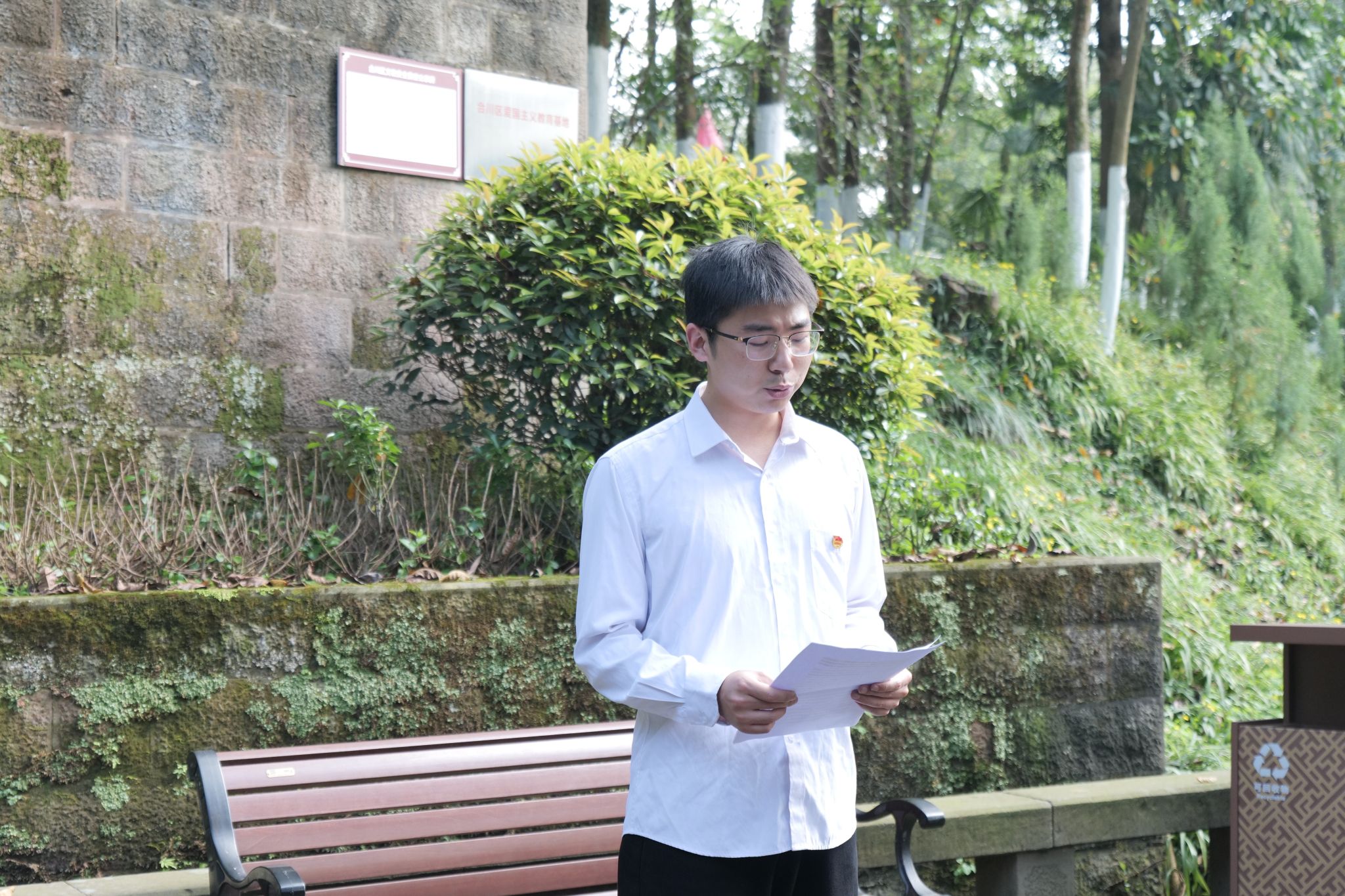 向志愿者们分享了纪念碑的建设意义、合川籍八路军烈士周极明的英勇事迹