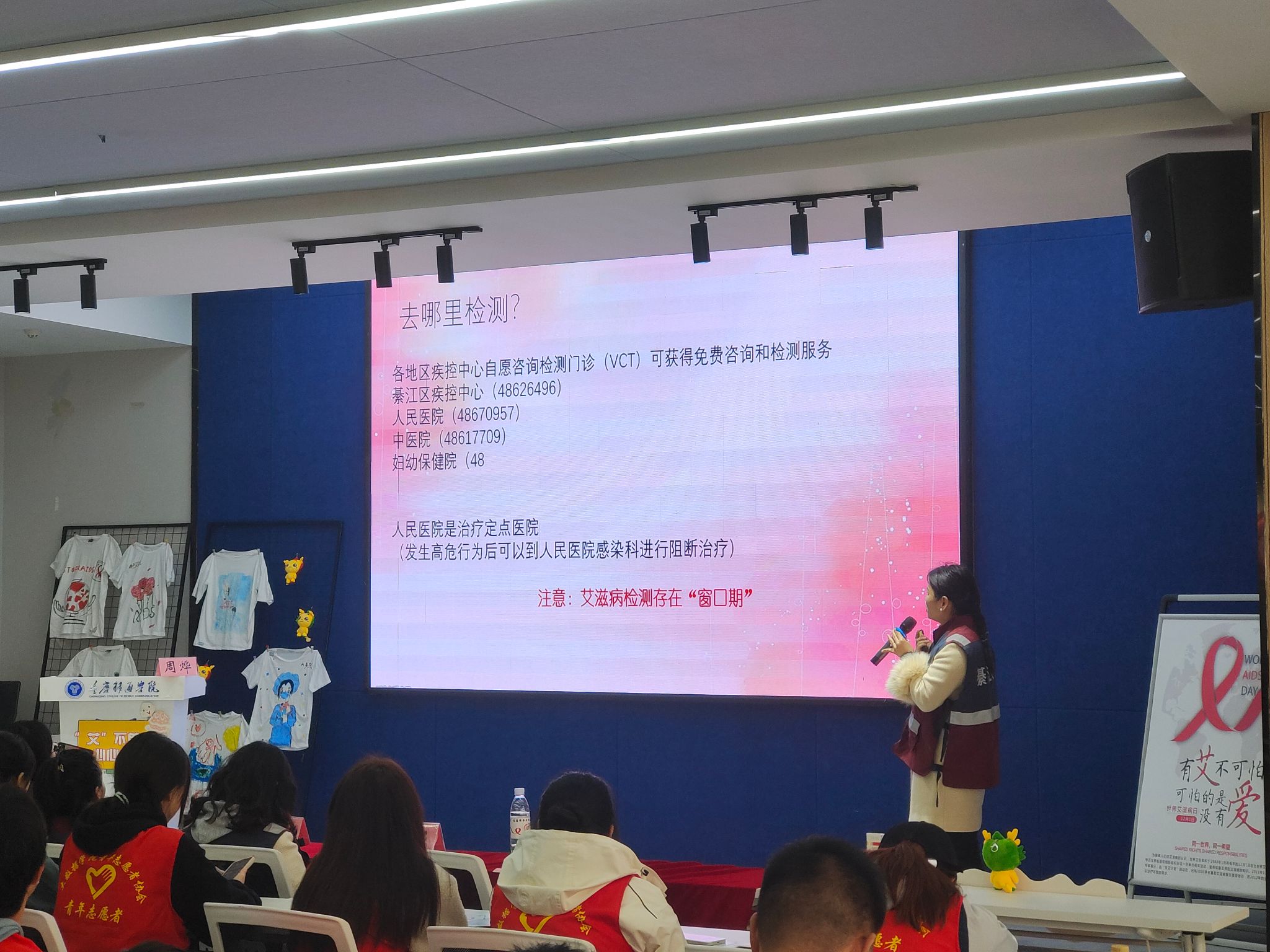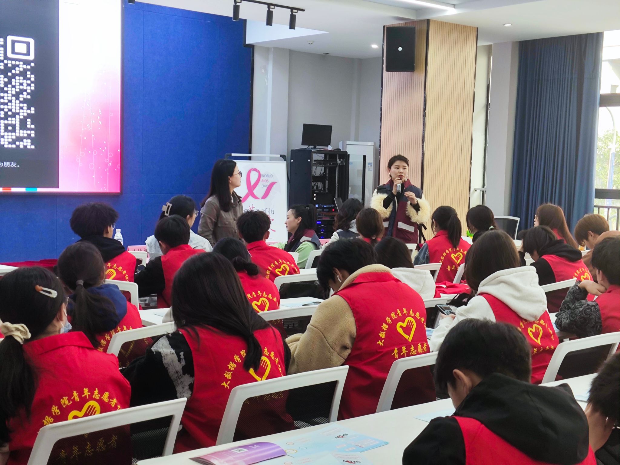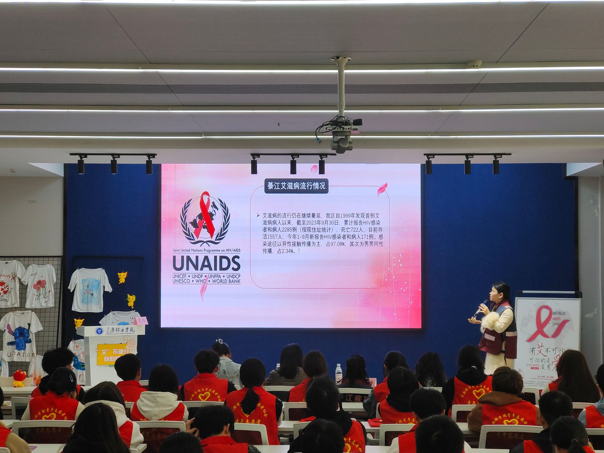 青春红丝带,防艾进校园。为进一步宣传艾滋病预防知识,帮助学生正确认识艾滋病,增强学生自我保护意识和社会责任感,2024年4月5日下午15点,天使关“艾”志愿服务专项支队于綦河书院观涛·多功能报告厅举办了以“因爱同心,因‘艾’同行”为主题的艾滋病宣讲活动,为确保同学们得到更为专业的知识,我们诚挚邀请到綦江区疾病预防控制中心周烨老师来、邓海茂老师和汪旭亚老师来到现场。