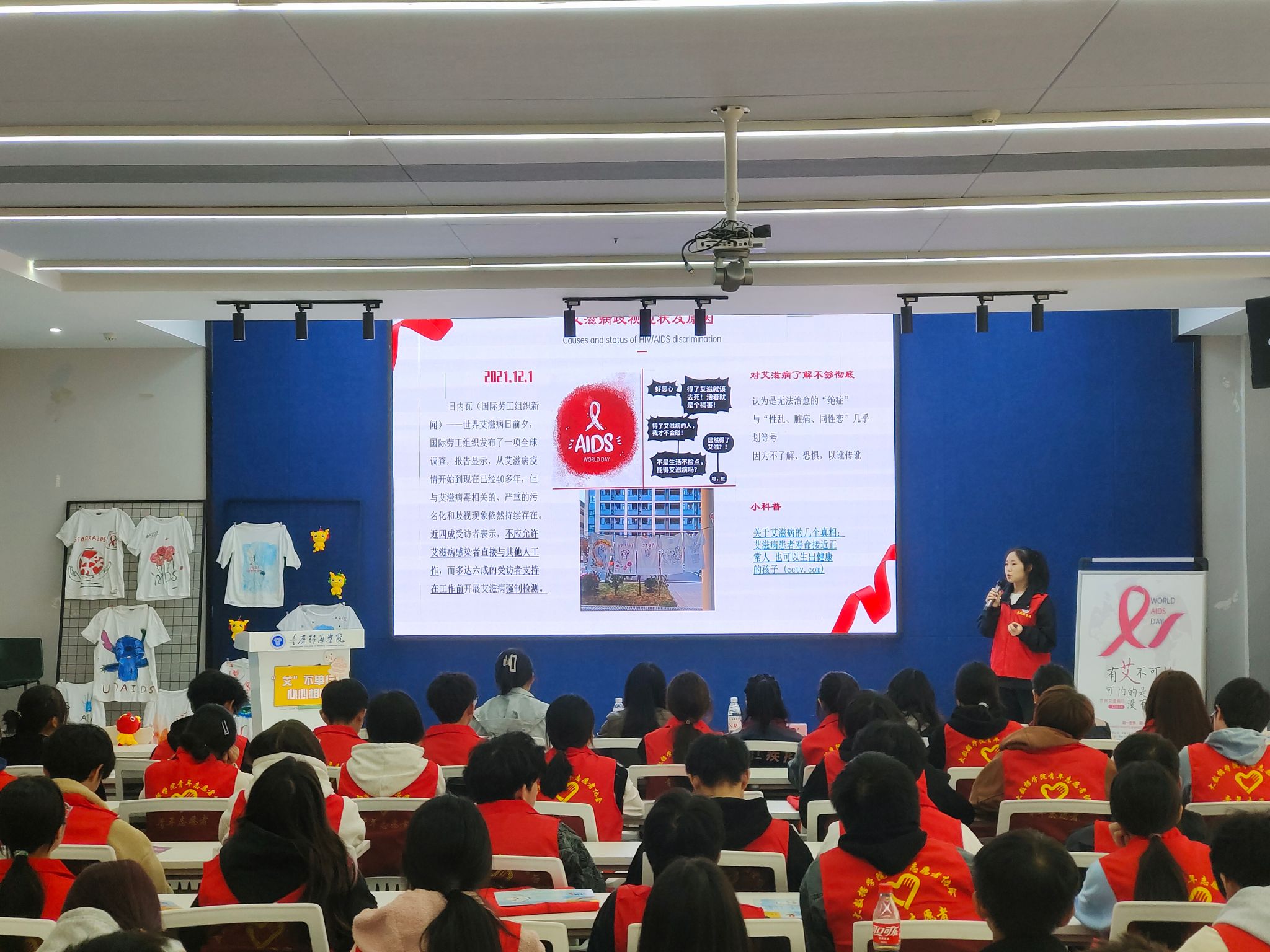 艾滋病是迄今受污名化影响最严重,病人遭受歧视和不平等对待最多的流行病,3月1日的“世界艾滋病零歧视日”也因此诞生。歧视会阻挡人们接受检测的脚步,而延误治疗将更多的人的生命置于危险中。正是因为艾滋病歧视现状严重,危害之大,志愿者借此宣讲会从以下三方面对歧视艾滋病的情况进行讲解:艾滋病的基本情况、艾滋病的现状,以及人们由于对艾滋病了解不彻底而歧视艾滋病患者。陈艳平同学讲到:为了消除这些不平等,有的国家出台反歧视法,有的组织做科普。而我们作为新时代青年志愿者,应该共同创造一个对任何疾病不再歧视,人类同仇敌忾打败病毒的世界。