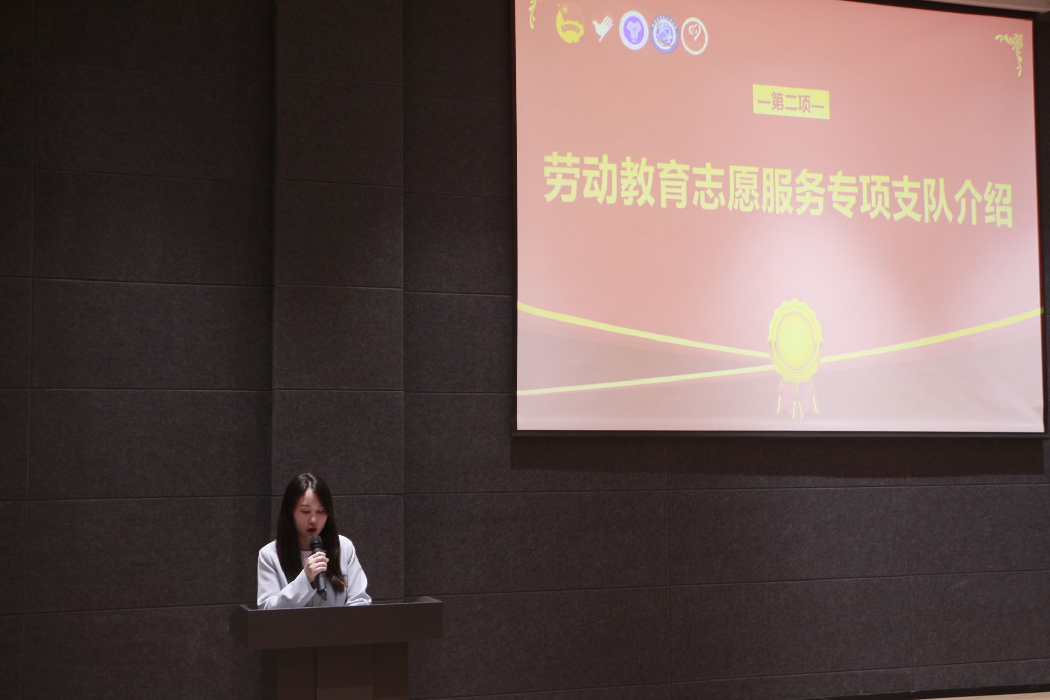 随后,支队长尹路生在发言中表达了自己对志愿服务的热爱与决心,作为支队成员将积极参与各种劳动教育和志愿服务活动,用行动诠释爱心和奉献精神,并将志愿服务作为一项长期事业,持续参与。他的发言铿锵有力,热情澎湃,一字一句都在坚定自己的志愿者精神,鼓舞我们每一位“新生力量”。