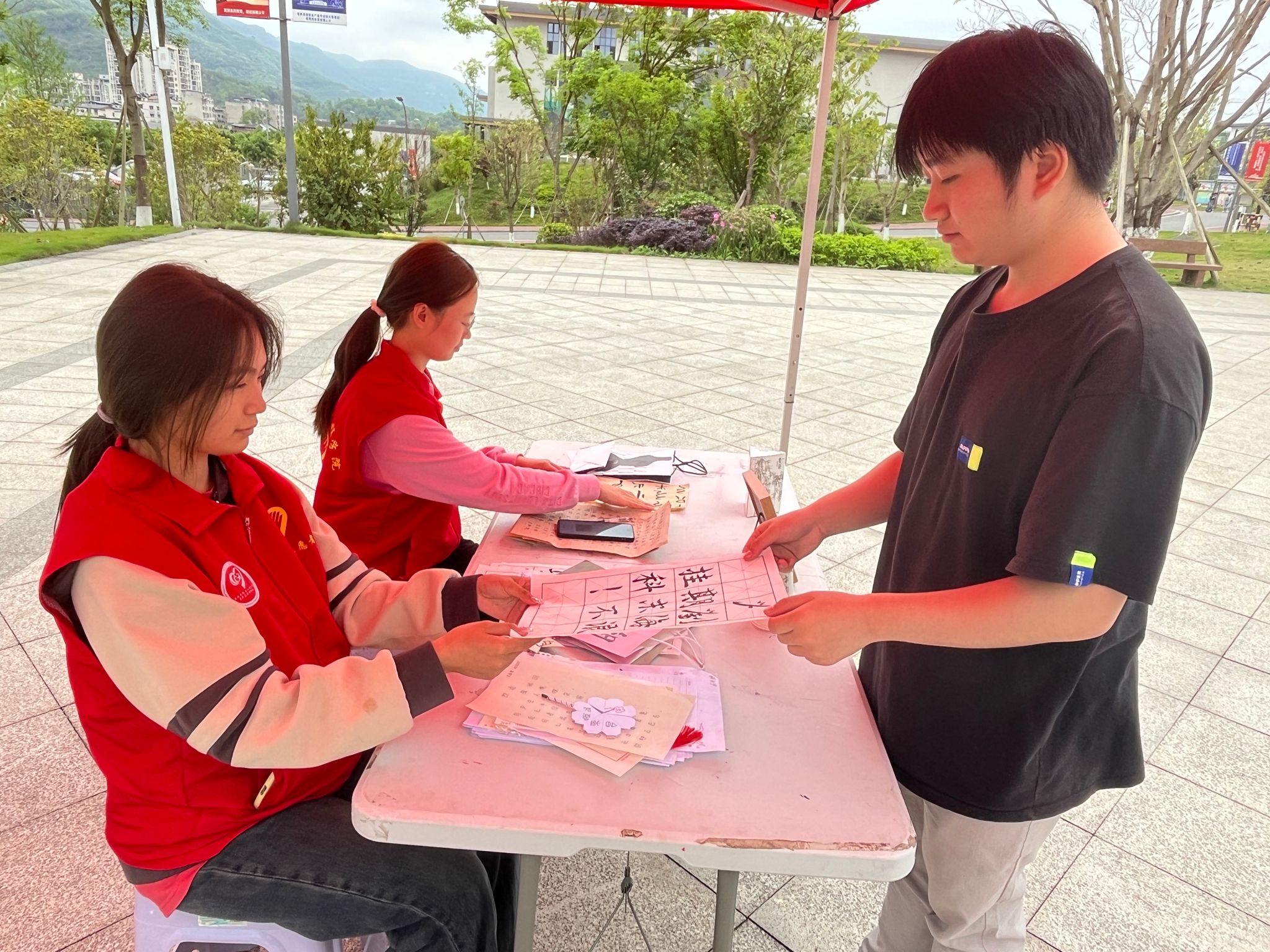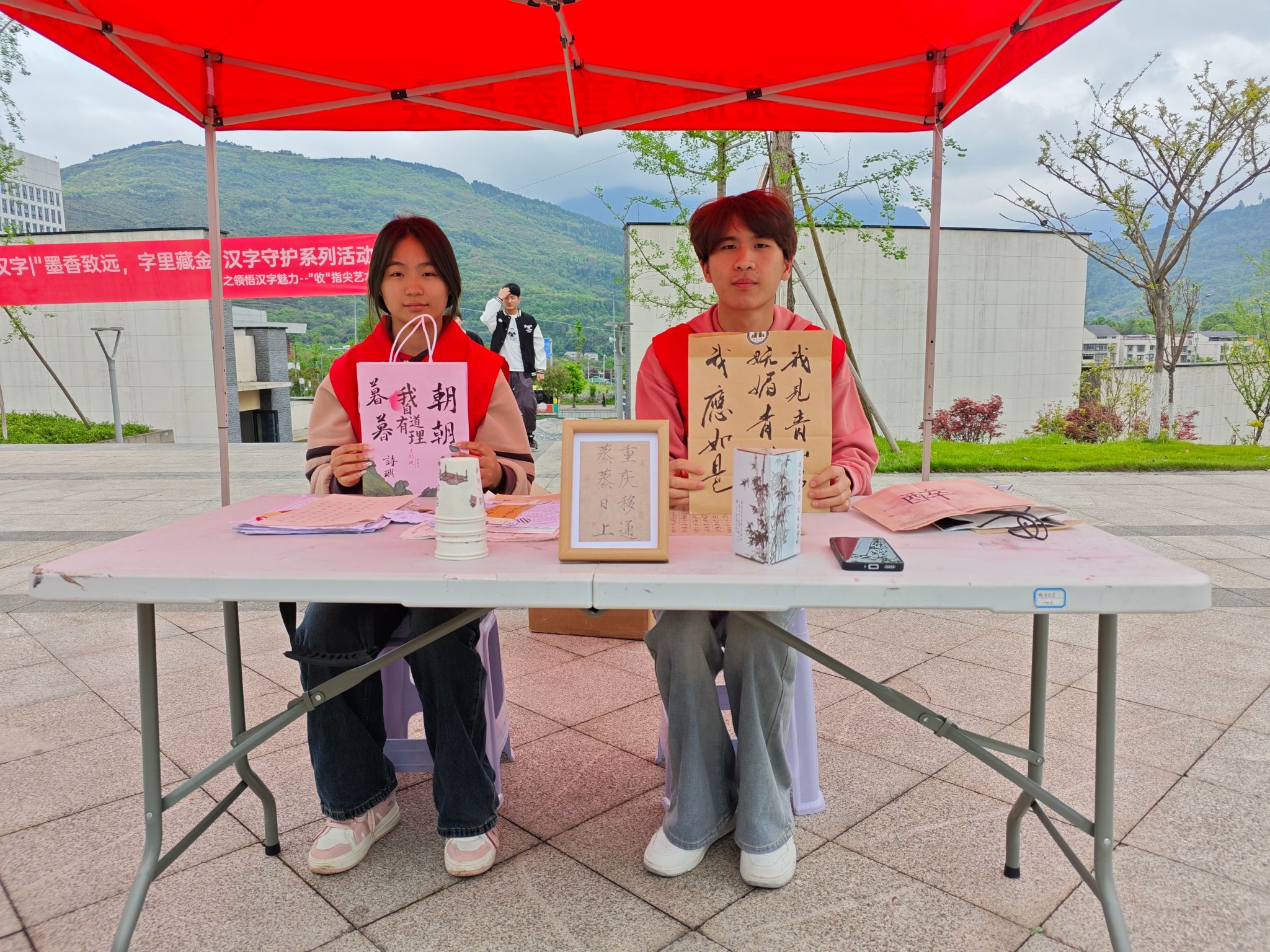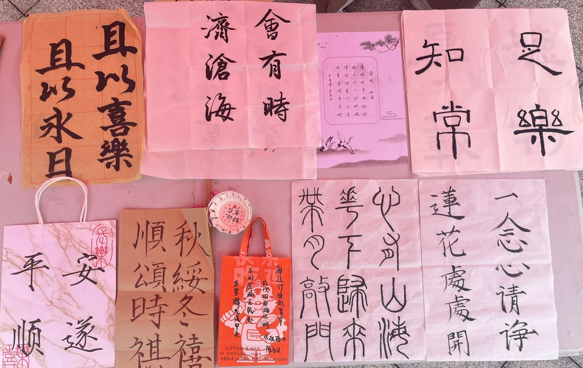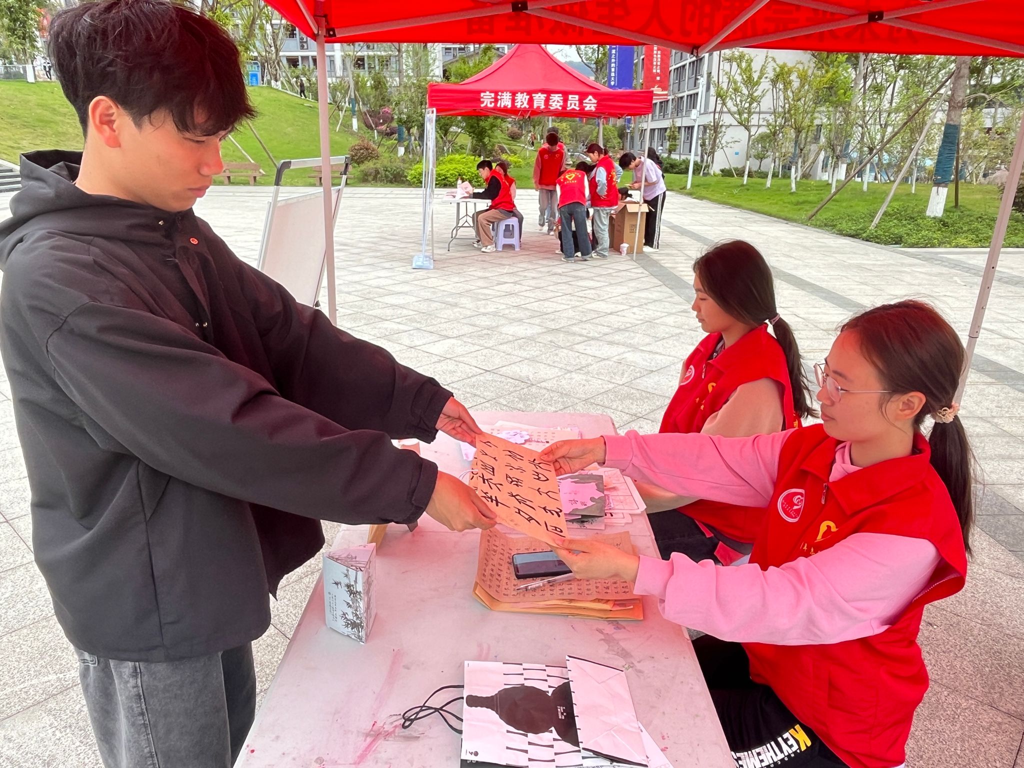 活动现场,共收取作品300余份,包括同学们亲手制作的书法作品、艺术团扇、创意纸袋等艺术周边。本次收集的汉字文创作品,将用于后期爱心书籍捐赠时的礼物馈赠。通过此次汉字文创设计,致力于将汉字的魅力价值提升最大化,感受汉字文化带来的精神红利。