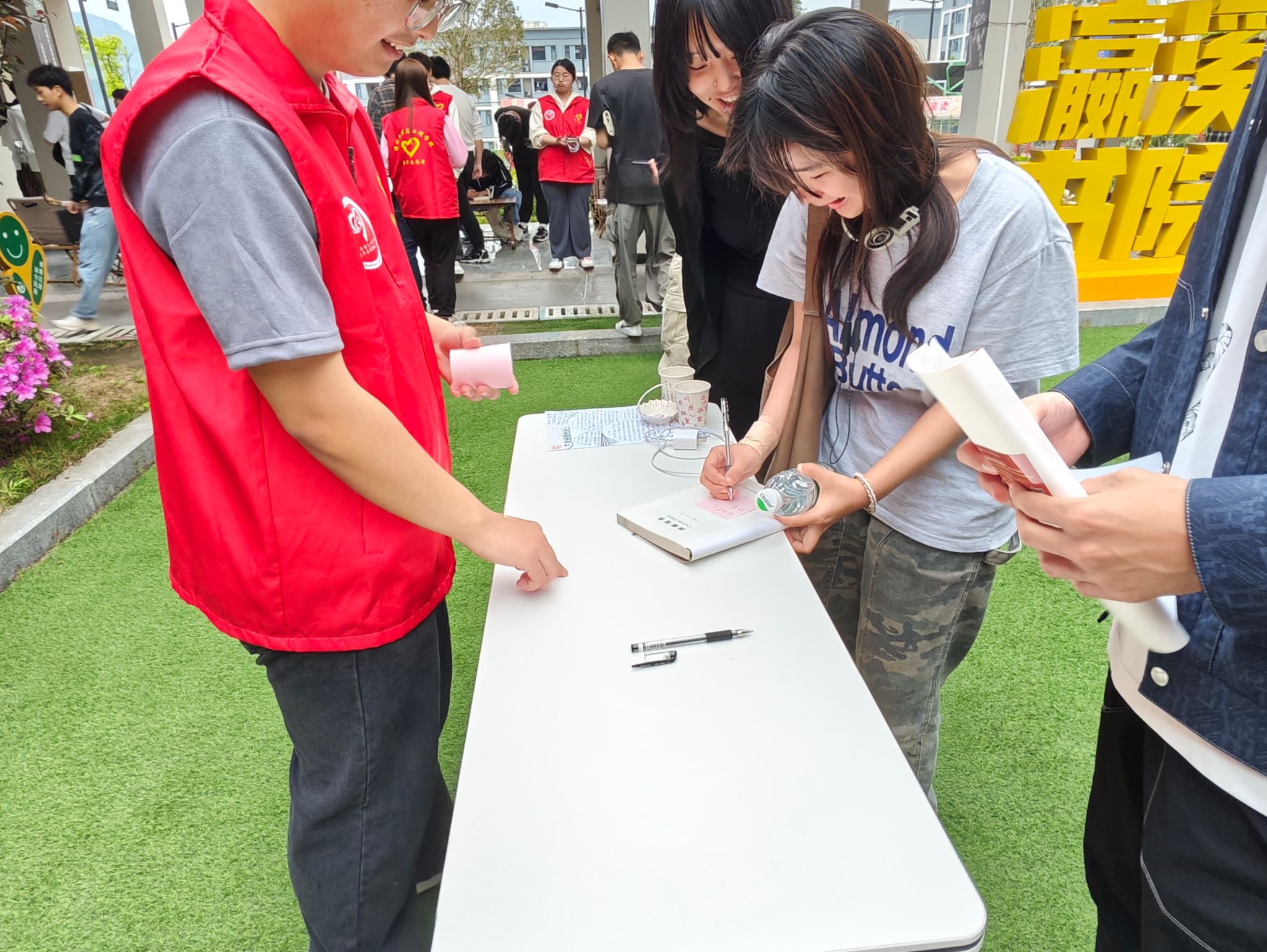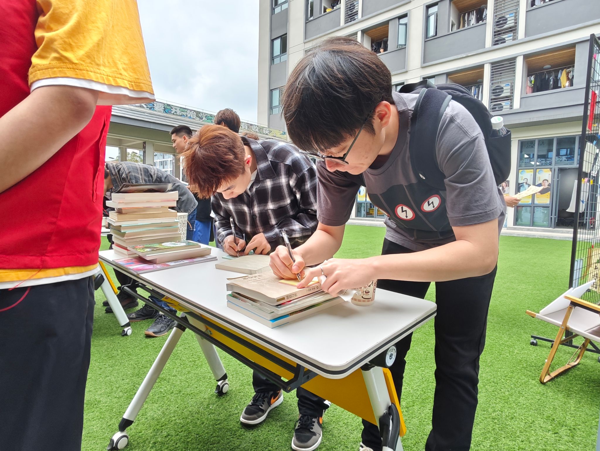 活动现场,志愿者各司其职,相互配合,为同学们营造好了一个良好的捐赠环境,捐书的同学们也积极参与其中,他们拿着书籍进行募捐,并在捐赠的书籍封面上,写上了他们对小朋友的温馨寄语与美好祝福,同时,志愿者们将前期收集的汉字文创品赠予同学们。此刻,活动氛围达到顶峰,同学们纷纷表示,知识是最宝贵的财富,希望通过这次活动能够为偏远地区的孩子们打开一扇通往知识之门。此时,捐赠书籍不仅仅是提供了一本本知识的载体,更是为当地小朋友带来了对未来的希望和信心。