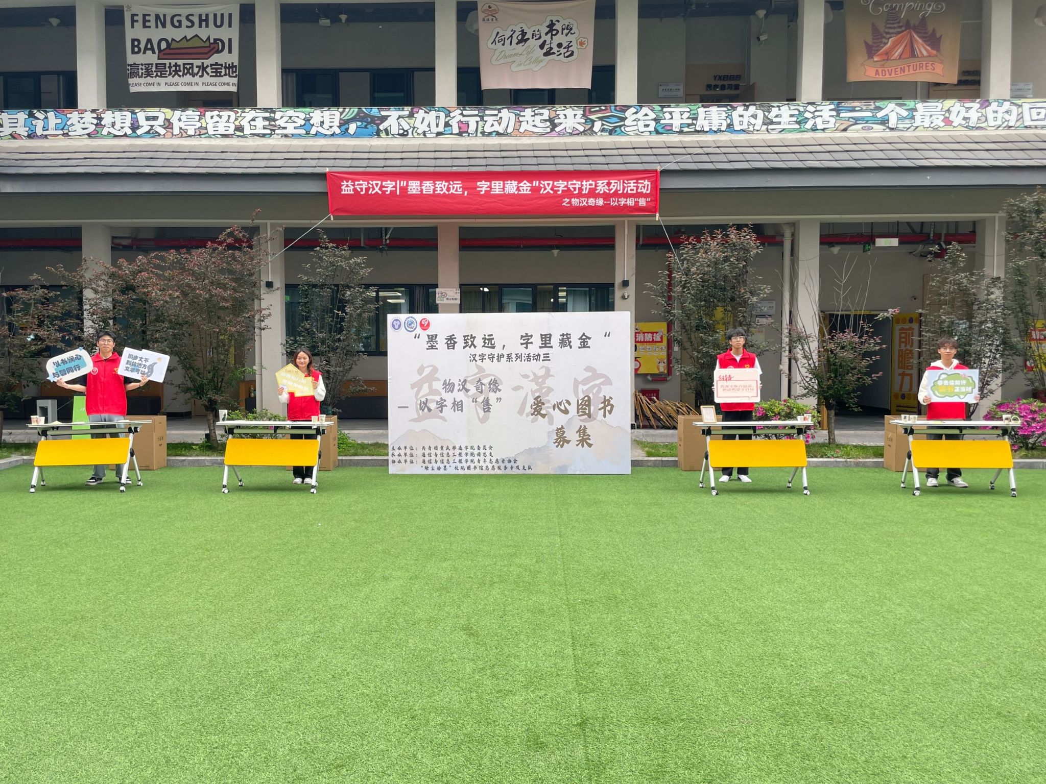 汉字是中国文化的瑰宝,每一个笔画都蕴含着千年的智慧,而这智慧,不再局限于富庶之地,而是在那贫瘠之地也能开花。为助推公益事业的发展,给农村青少年儿童提供深入体验中华文化的机会。特此,通信与信息工程学院青年志愿者协会联合“除尘拾墨”校园图书馆志愿服务专项支队于4月10日下午,在灜溪书院中庭开展“物汉奇缘——以字相‘售’”爱心图书募集活动。此次活动共计参与400余人,活动共计受益1000余人。
