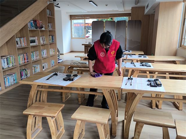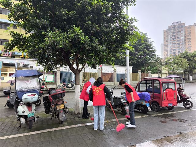 下午2点,天气灰蒙蒙的,但丝毫没有减少志愿者们做志愿活动的热情,反而热情高涨。参与此次活动有20余名志愿者,志愿者们聚集在社区门口,身穿红色马甲,同时,大家手上拿着扫把、拖把等清扫工具,为下午的清洁工作着手准备着。活动中,志愿者们拿着抹布把宣传栏、健身器材擦干净,对乱停放车辆进行规范摆放。清洁工作中,大家分工明确,相互配合协作,原先的各种垃圾不见踪影,杂乱的堆放物也各归其位,走道干干净净,楼道井井有条。