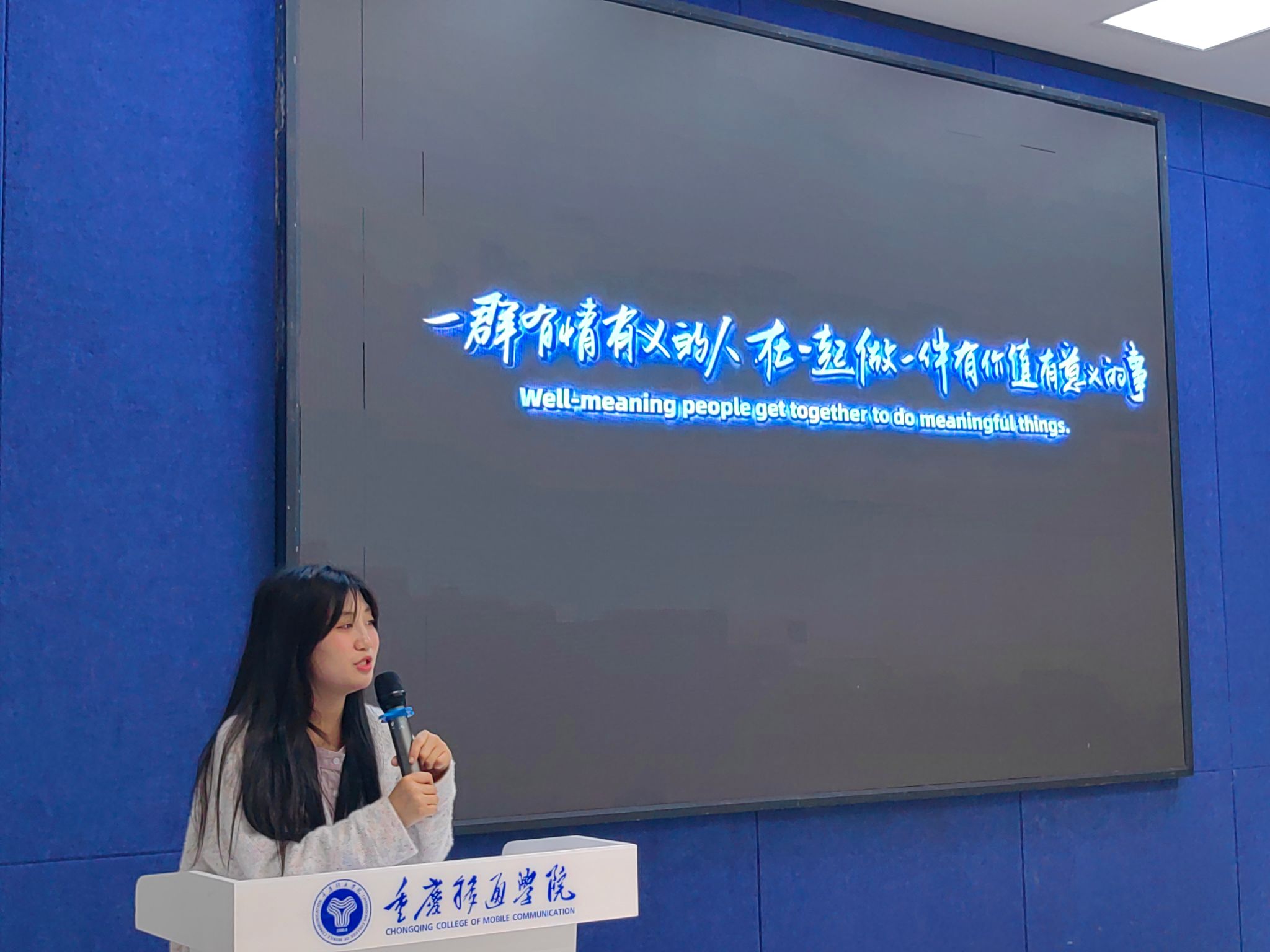 为了进一步弘扬志愿服务精神,激励志愿者们对志愿服务的探索,加强志愿服务理念,拓宽志愿服务视野。大数据学院青年志愿者协会于2024年4月11日12点40分,在綦河书院观涛功能室举办了一场关于“同学,你好”乡村美育计划经验分享的活动。本次活动由大数据学院数媒专业的李玉婷同学分享在“同学,你好”乡村美育计划中荣获全国16强的经历与感悟,为大数据青协各部门干事和各班团志愿服务委员提供志愿服务项目化的经验。