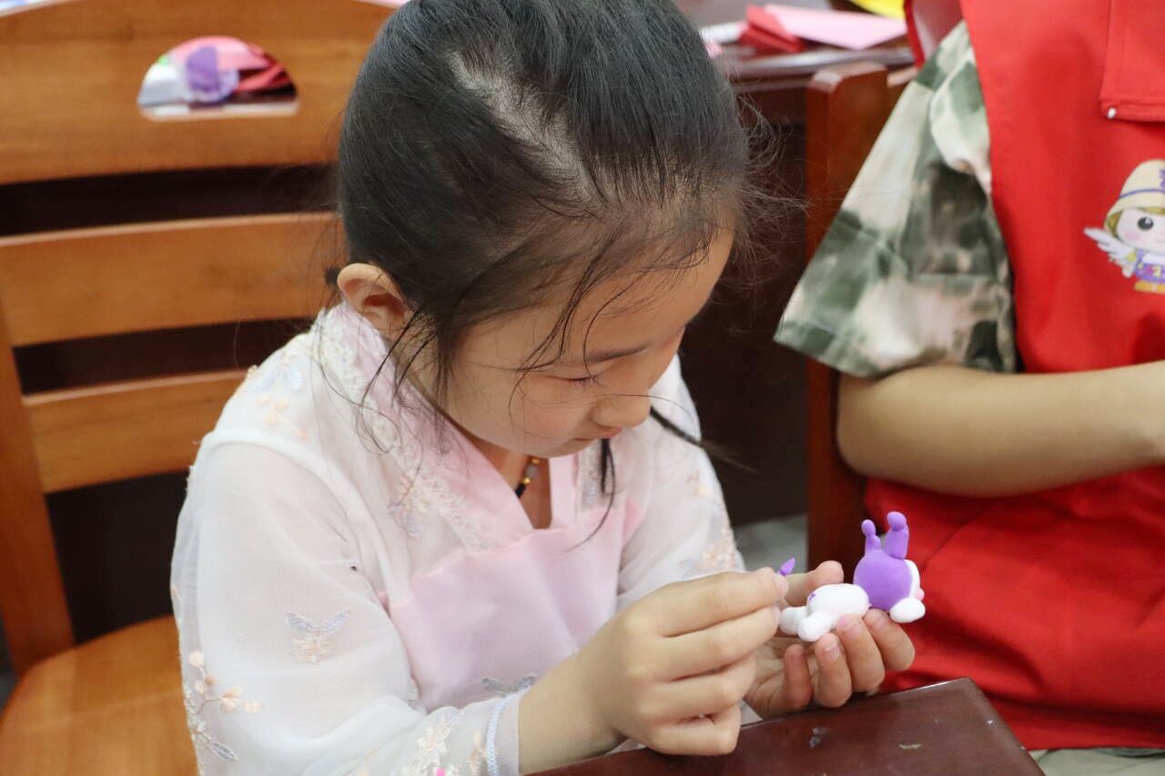 课堂上,小老师首先从折纸的发展、含义、工具、方式四个方面入手带领小朋友们叩响了折纸文化教育的大门。目光所及,每个小朋友都挺胸抬头、专注地听课,小小的脑袋,大大的眼睛,渴求探索的眼神,在小老师和志愿者们的积极引导下,活泼可爱的小朋友们也踊跃举手发言。随着课堂的开展,志愿者引导小朋友用彩色卡纸创作关于折纸的艺术作品。有的小朋友贯彻自己想做一名的船长的愿望,折出各式各样的船只;有的小朋友更喜欢活泼可爱的小动物们,一只只可爱的小猫小狗通过折纸的方式在他们的手中活灵活现。一个个别具一格的作品在小朋友们的创作下呈现在大家面前。小朋友们完成了自己的作品后,带着自己的作品热情和志愿者们合照,他们的脸上也露出了灿烂的笑容。