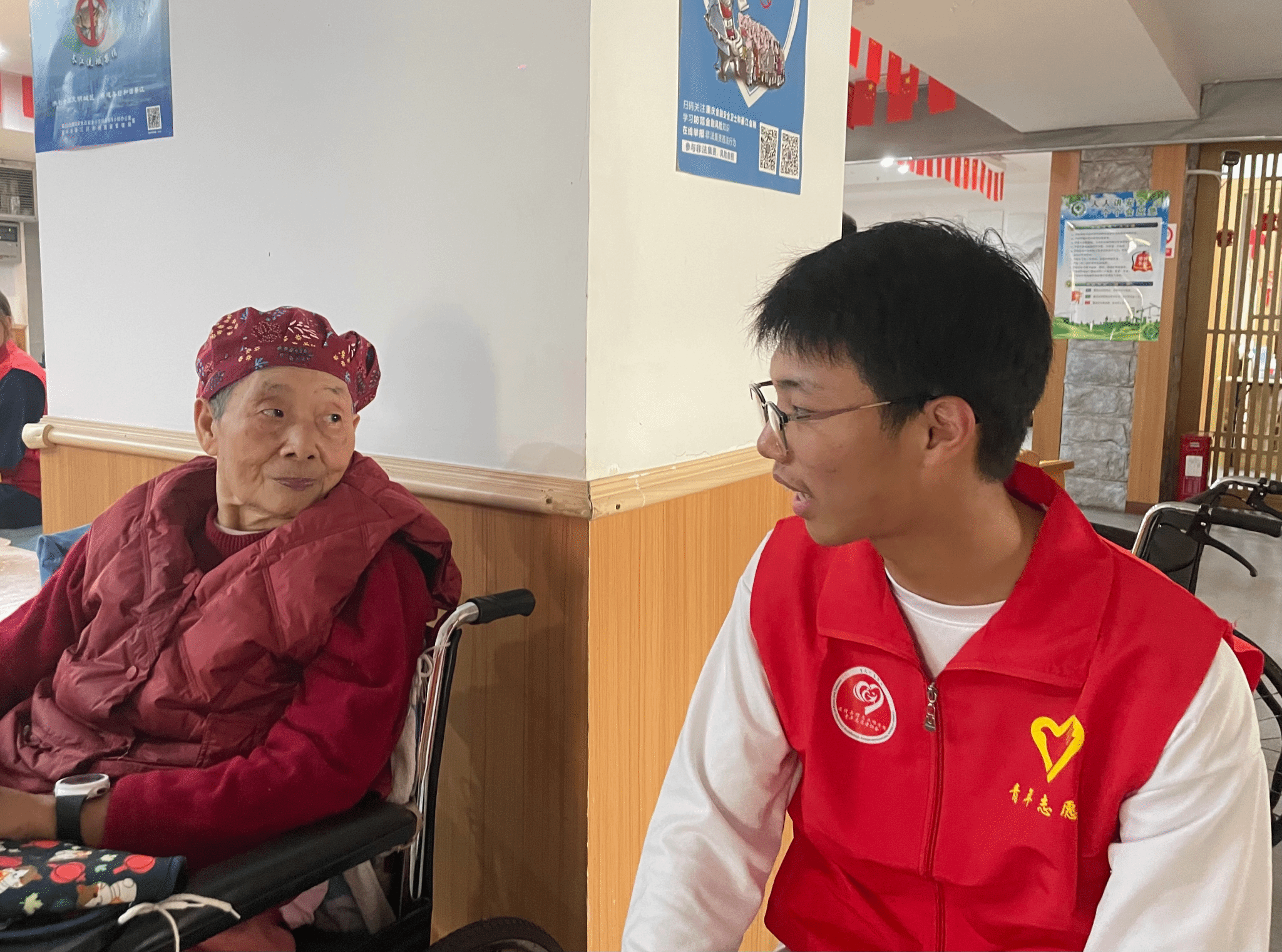 随后,志愿者们和老人们聊起了家常,多位老人深切回忆地讲述着自己革命时期的红色故事,在他门的眼神中藏着风云变化的岁月,话语中藏着思念与希望,字字都经过了岁月的沉淀。最后,随着熟悉的旋律播放,响亮的歌声也随之响起。我们共同合唱红歌缅怀历史,感受那份对革命理想的坚定信念。