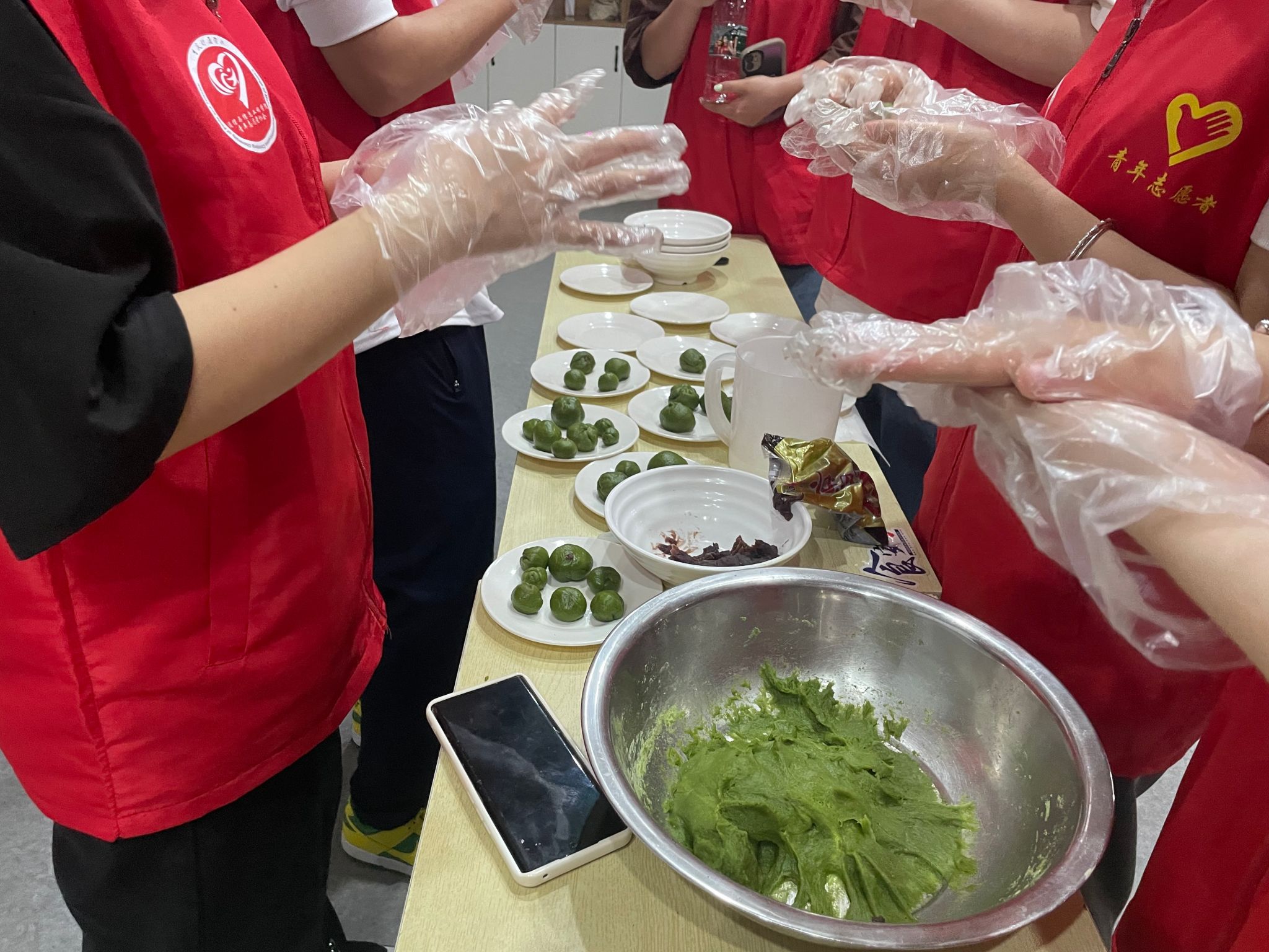 活动现场,志愿者们亲手制作象征团圆与和谐的青团,一边细心地揉面包陷,一边和老人讲解节日习俗。老人们的笑容真挚且灿烂,现场氛围其乐融融。不时,一个个自带艾香的青团便呈现在眼前:赏心悦目,清新自然。品尝一口,是对传统美食与节日的赞美,也是对传统文化和情感的传承与弘扬。