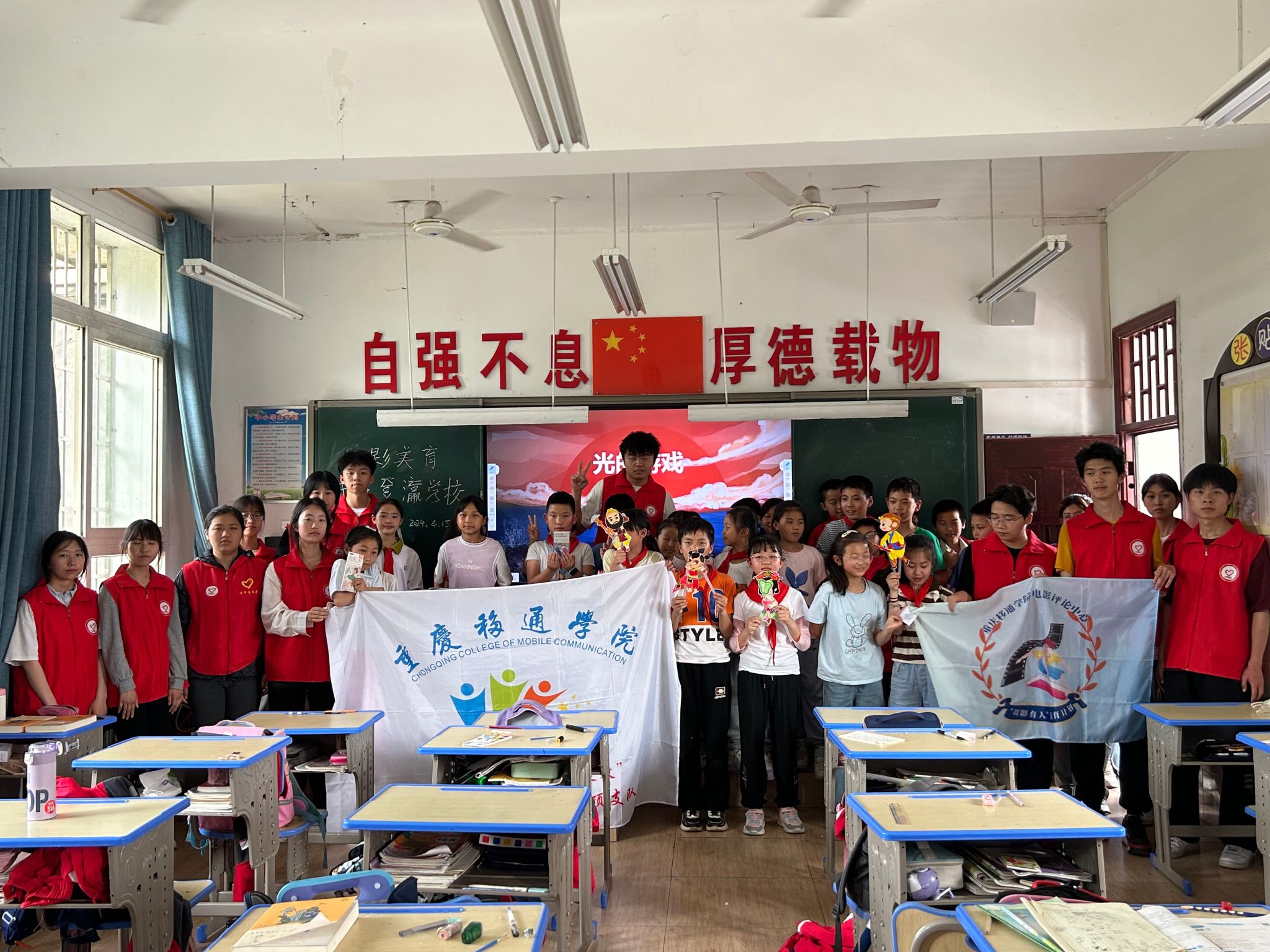 中华传统文化承载着中华民族的价值追求,弘扬中华传统文化是每一位青年的义务。为了进一步加强孩子们对中华传统文化的理解,增强对传统文化的认同,重庆移通学院淬炼商学院青年志愿者协会“七彩筑梦·完满绽放”关爱儿童志愿服务专项支队(綦江校区)于2024年4月15日在重庆市綦江区登瀛学校开展了“光的游戏之皮影戏”活动。