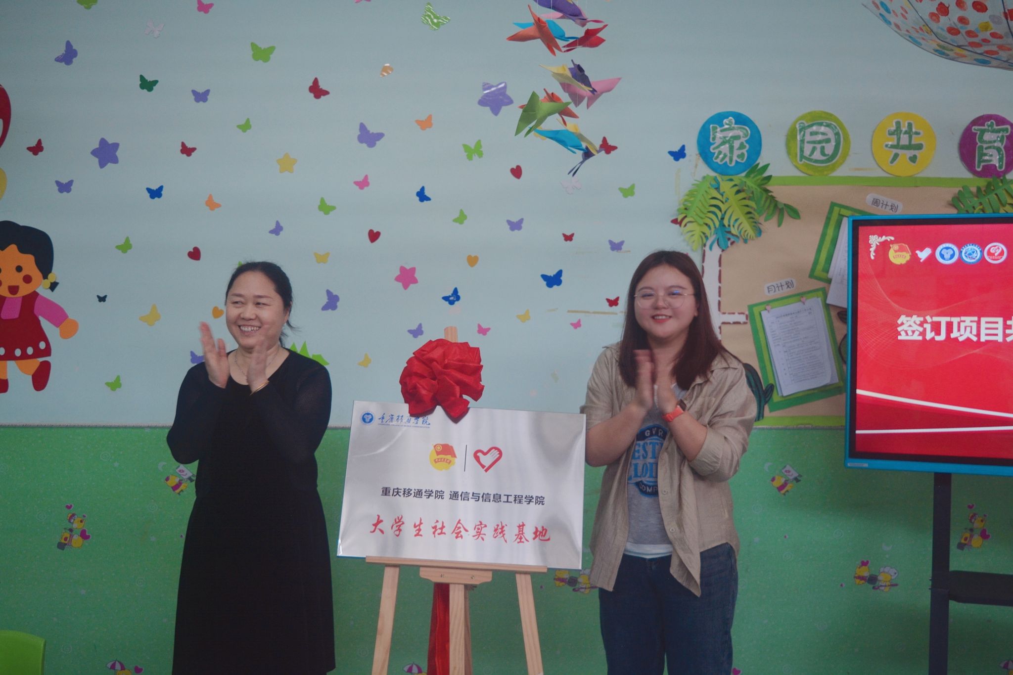 最后,黄真老师与马清华园长签订了大学生社会实践基地合作共建协议书,并共同为“大学生社会实践与志愿服务基地”揭牌。