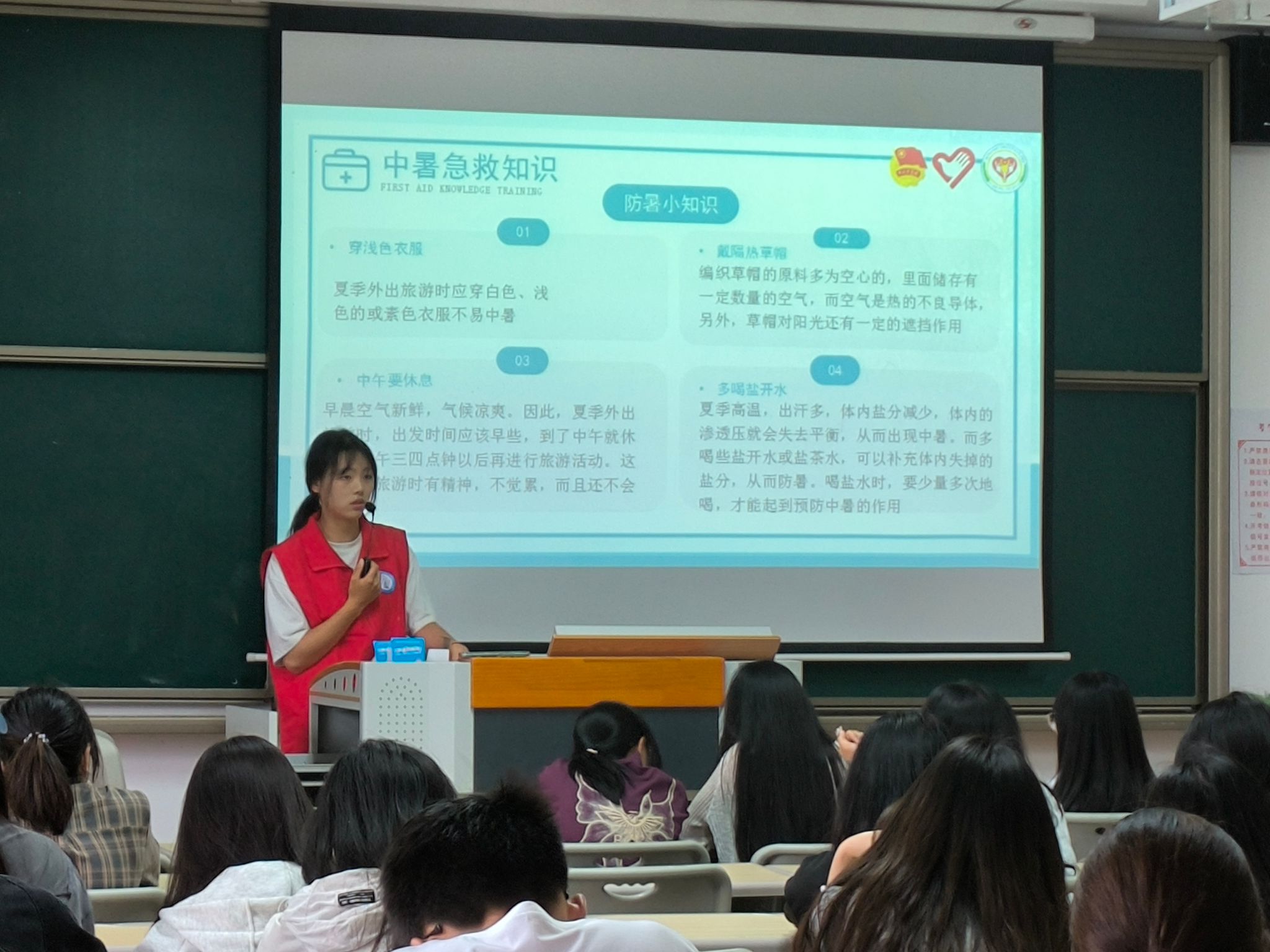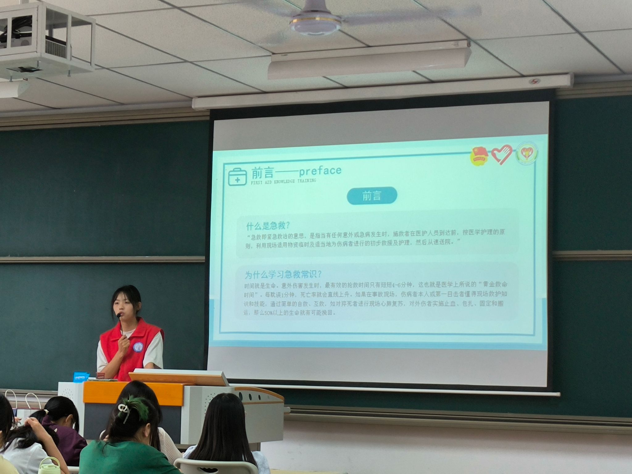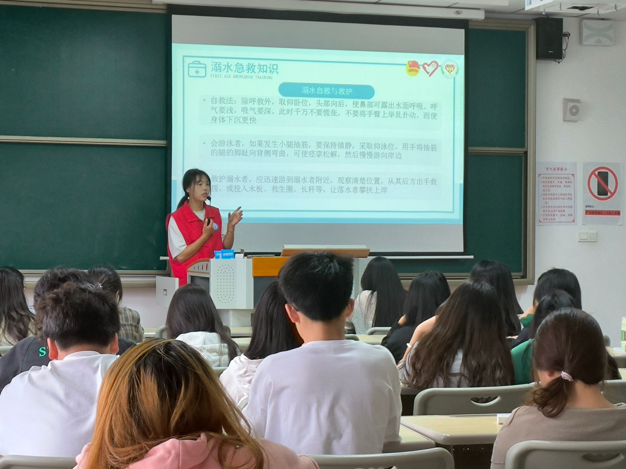 本次宣讲主要从生活中遇到的一些突发情况进行讲述,例如气道异物梗塞的海姆立克急救法、溺水时的自救、不同程度的中暑、烧烫伤等突发情况的急救方法,这些急救知识不仅可以帮助同学们在遇到这些突发情况时能进行自救,同时也可以在必要时帮助他人。让我们更加珍视,爱惜自己的生命。