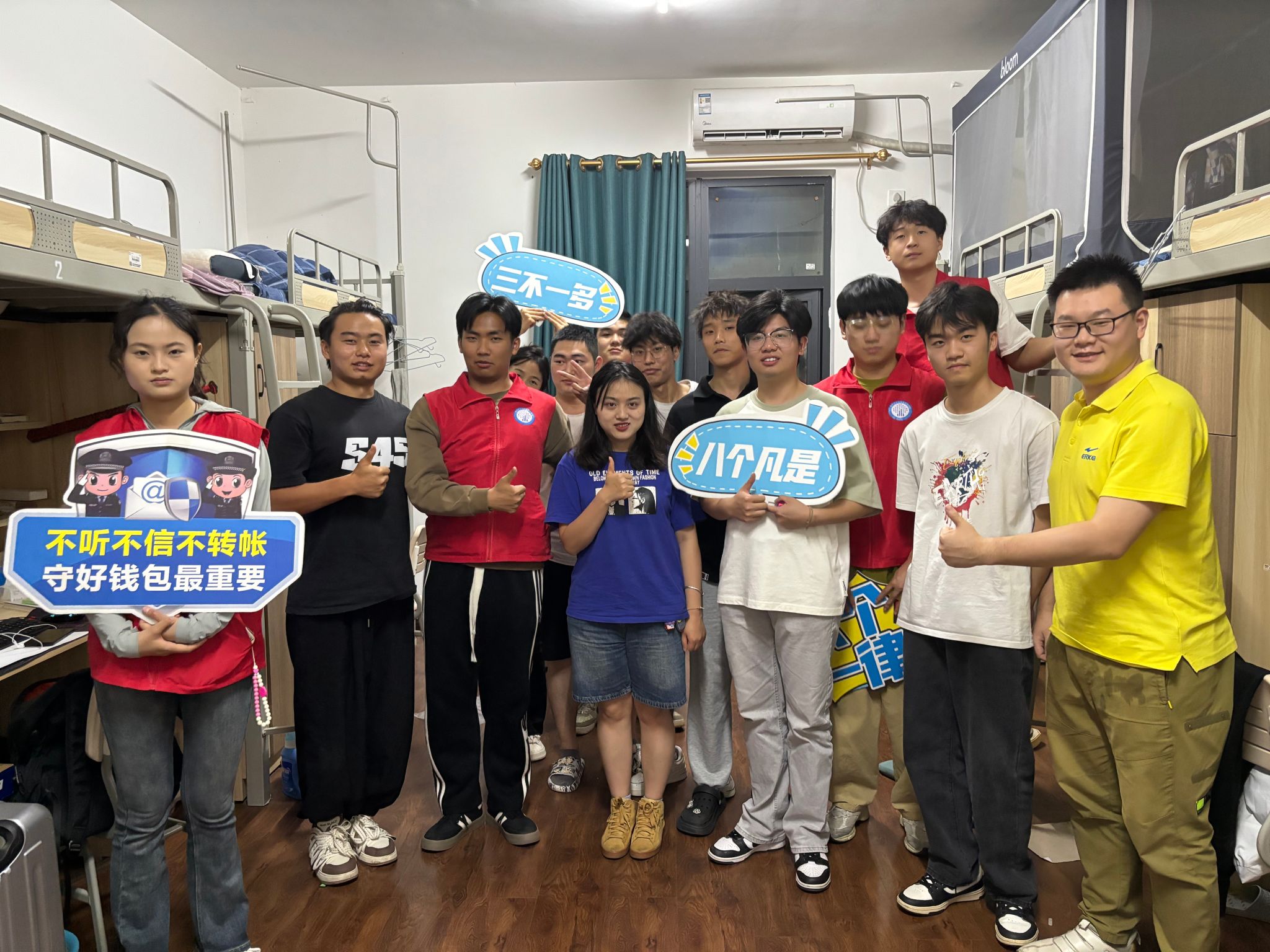此外,我院青协积极联动“慧眼天使”志愿服务专项支队展开相关防诈反诈宣传。寝室现场还设置了互动环节,通过快问竞答、情景模拟等形式,让同学们在轻松愉快的氛围中提高防范诈骗的能力。活动气氛热烈,同学们纷纷表示受益匪浅。