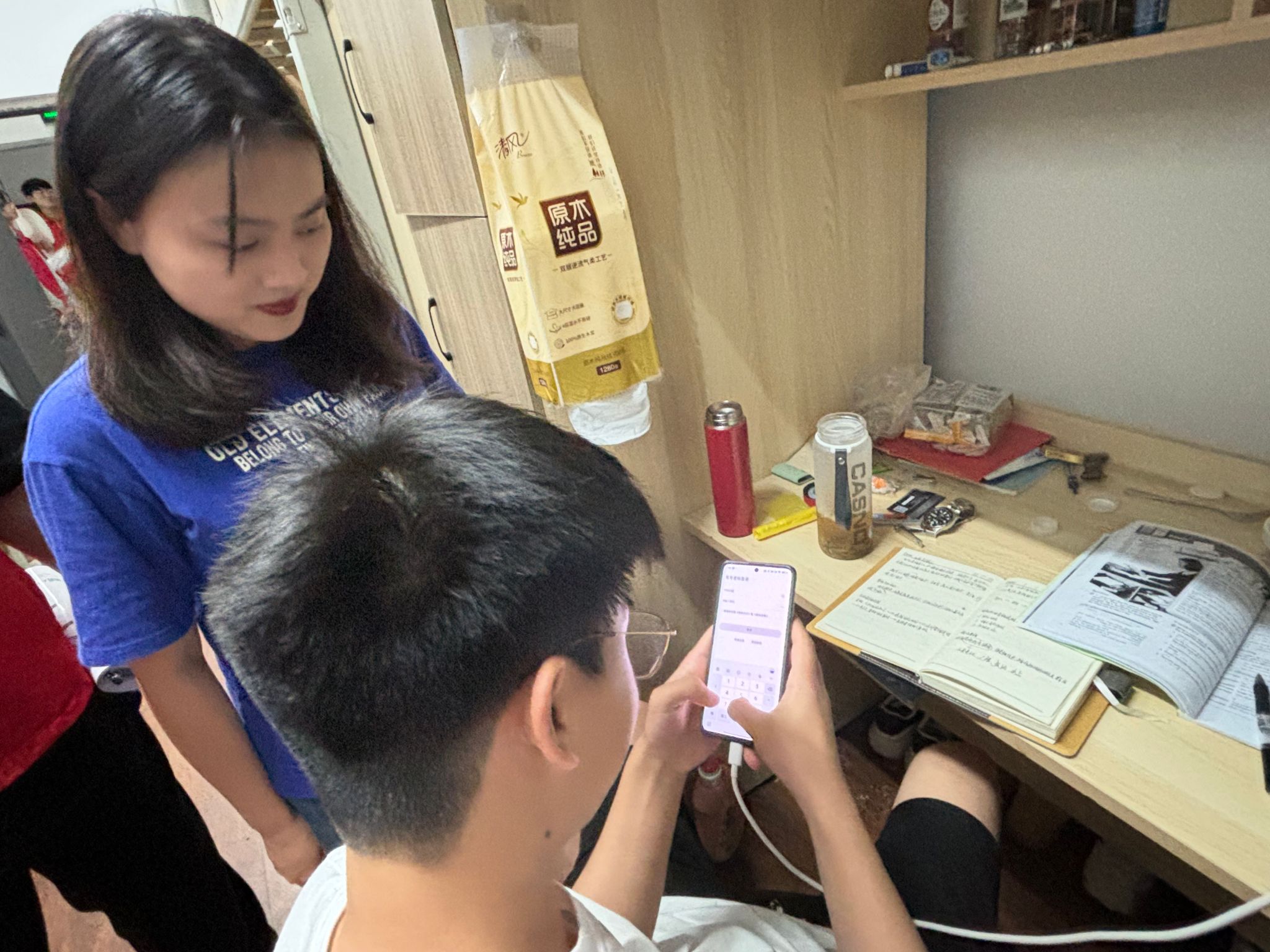 在寝室现场,反诈宣传志愿者向同学们发放反诈宣传资料,包括反诈手册、海报等,并现场讲解各种诈骗手法,如“校园贷”“兼职诈骗”“虚假中奖”等。志愿者们通过生动的案例分析,向同学们分享如何识别诈骗、防范风险的方法和技巧。