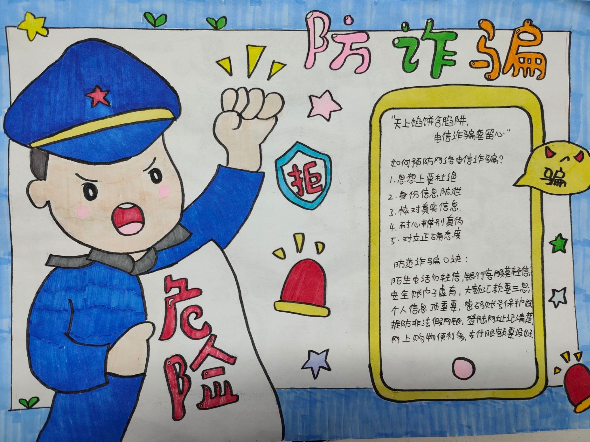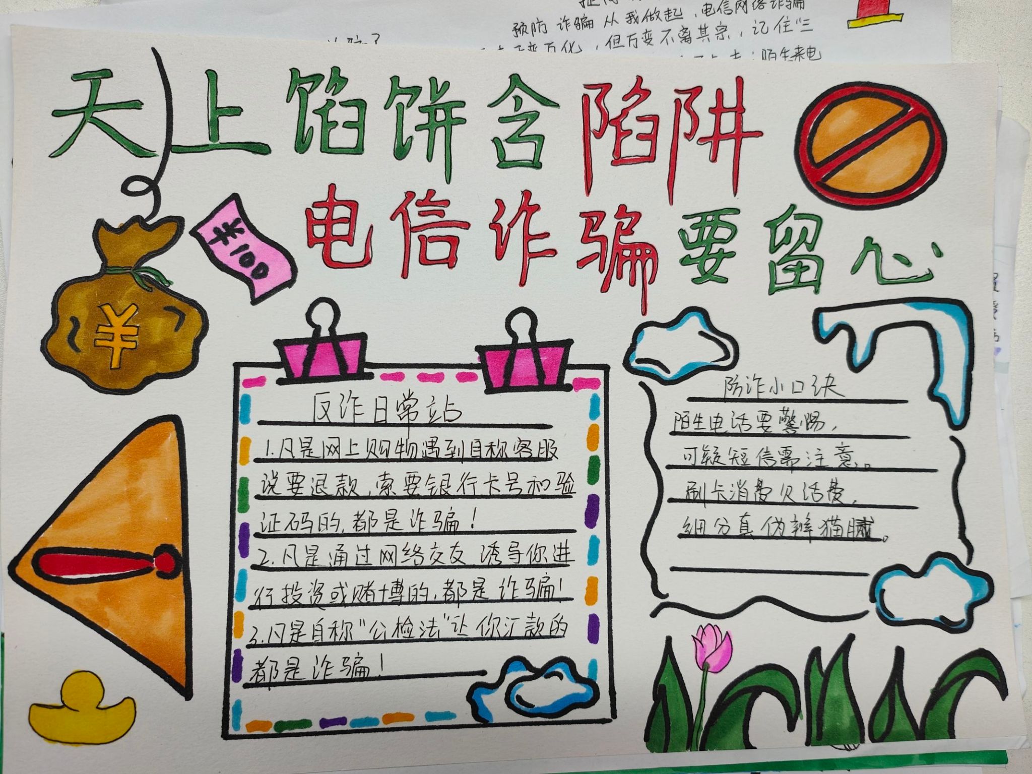 通过此次活动,让同学们对电信网络诈骗有了更倾心的认知,在日常生活中也会不断提高警惕,积极提醒周边的同学亲人谨防电信网络诈骗。此次反诈宣传手抄报活动进一步提高了同学们防范电信诈骗的意识与能力,同时也提醒了同学们在日常生活中不贪图小便宜、不轻信他人、不轻易泄露个人信息等,守护好切身利益,共同在晴朗的校园环境下健康成长!