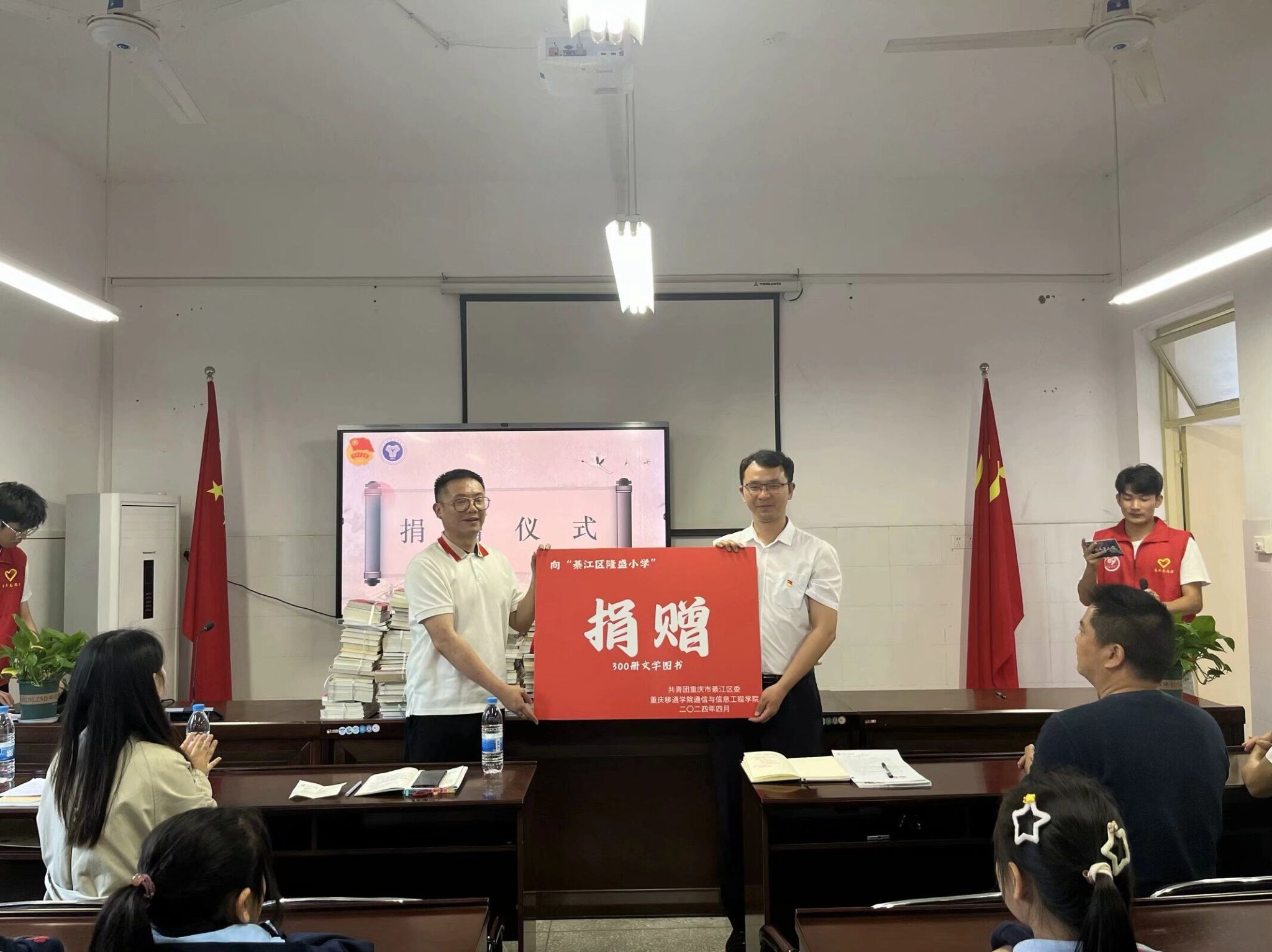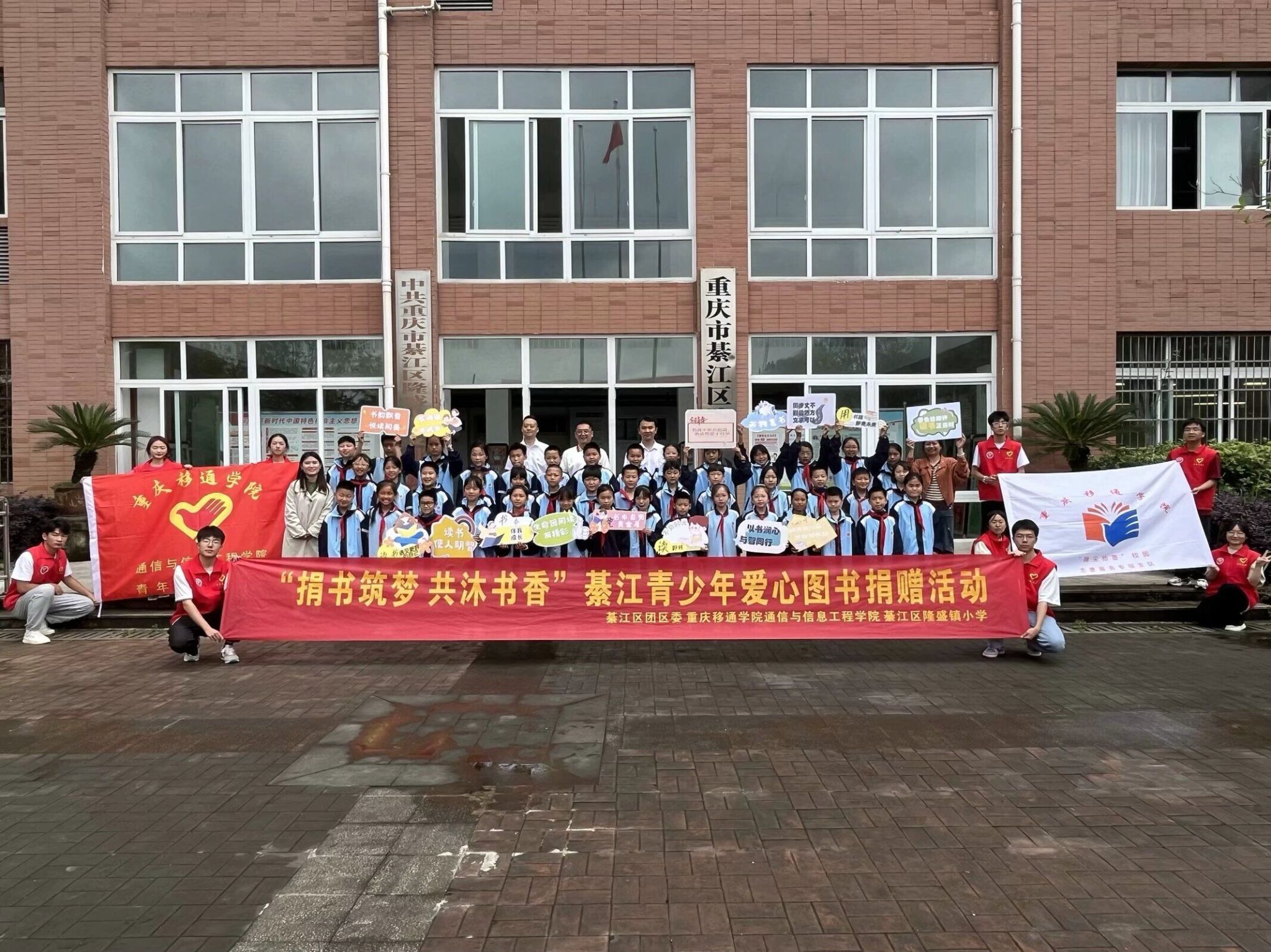 重庆移通学院通信与信息工程学院学工办主任胡戈立老师在讲话中提到:“重庆移通学院是一所以完满教育为依托,通过四位一体的教学方式培养学生,志愿服务是每个移通学子的必修课。”隆盛小学校长表示:“隆盛小学大力营造书香校园,这300本书籍将指引每个隆盛学子成长,也愿双方在今后的工作中加强交流,深入合作。