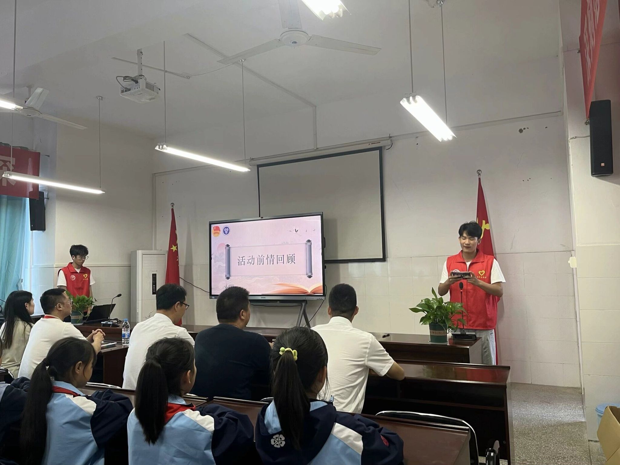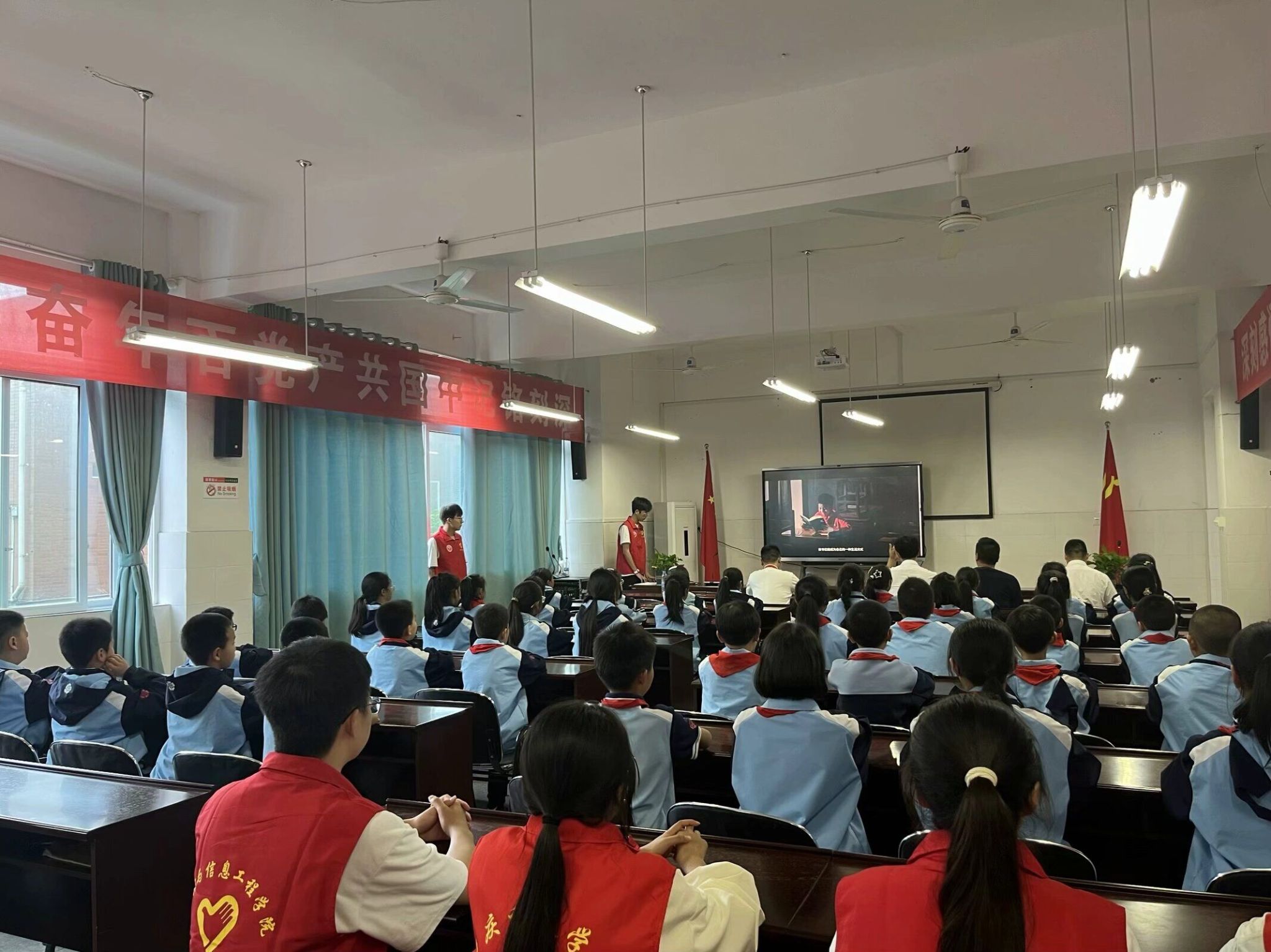 捐书仪式正式开始,现场志愿者带着移通学子的“爱心”走上台前,用书籍堆砌出孩子们前行的方向,“有一分热,发一分光,就如萤火一般,也可以在黑暗里发光,不必等候炬火”,移通青年学子,用实际行动成为隆盛小学学生心中的那团炬火。
