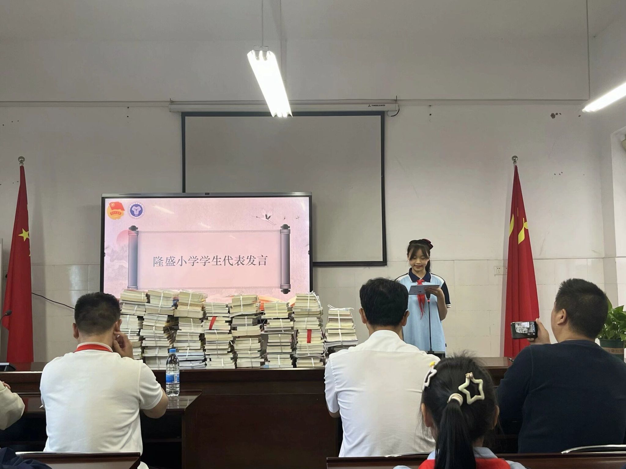 “这些书籍不仅丰富了我们的阅读资源,更激发了我们求知的热情。”来自隆盛小学六年级二班的唐栩艳同学的精彩发言。