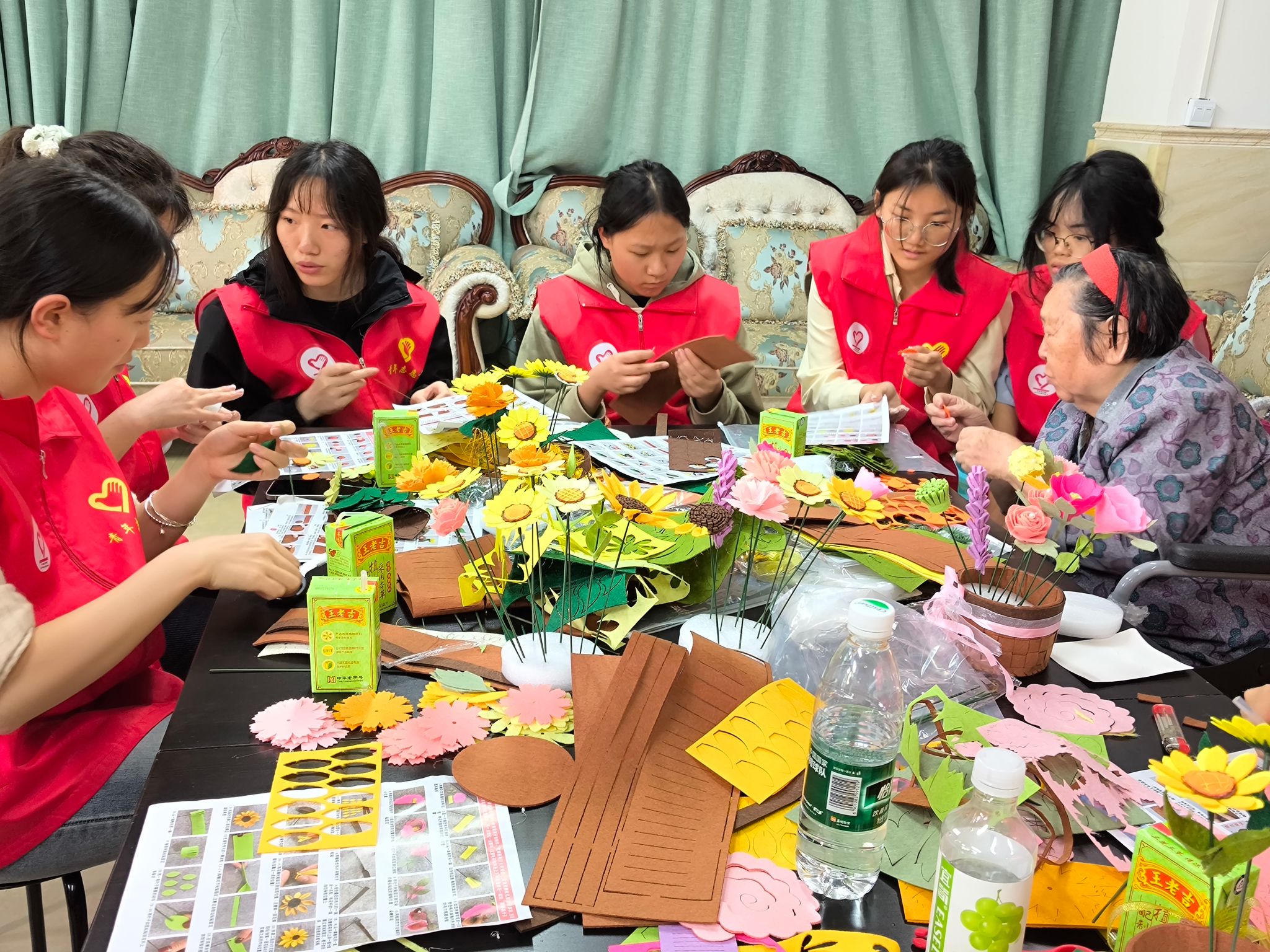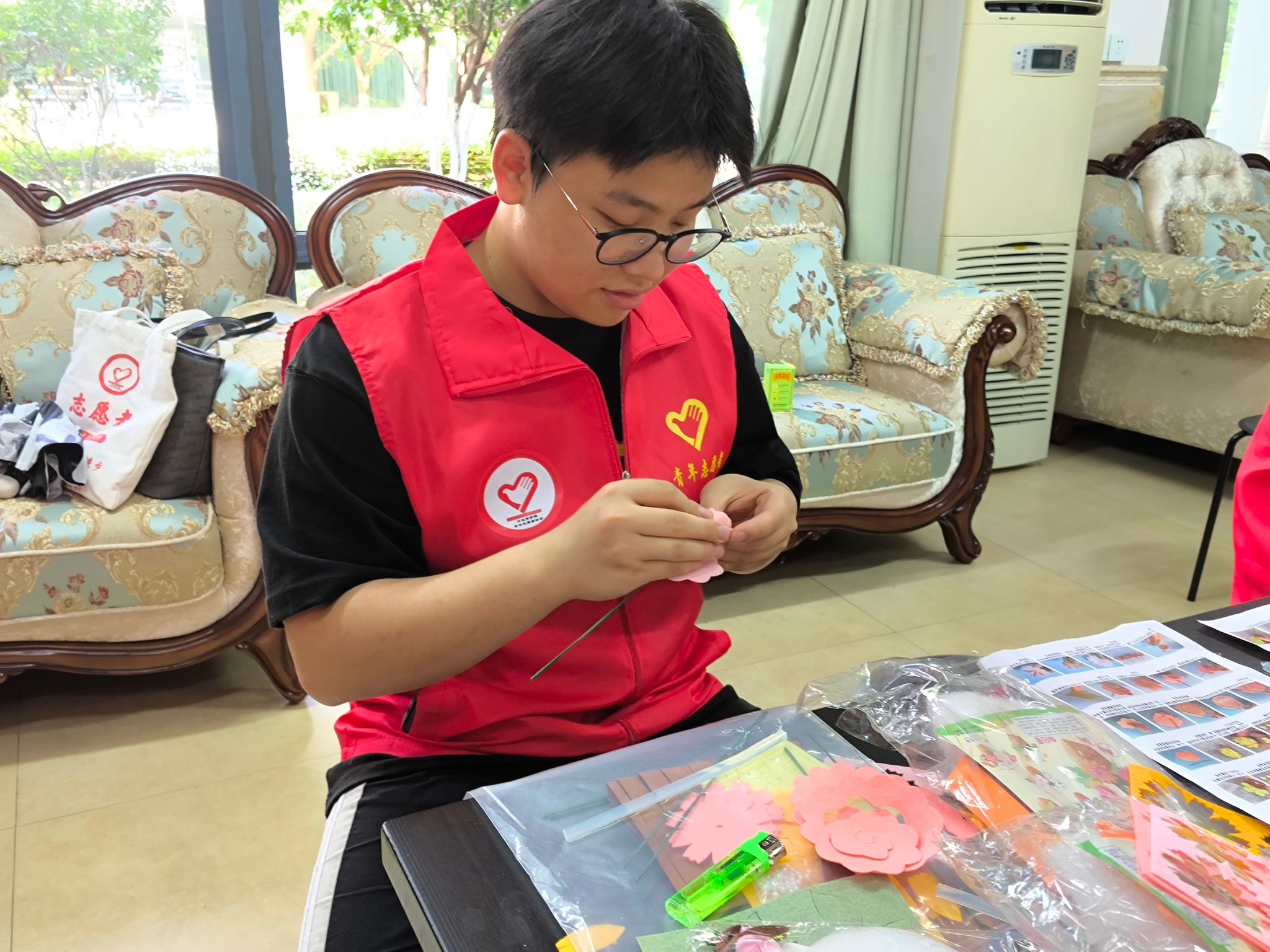 在手工期间,志愿者们听老人们讲述过去的故事,那段艰辛的劳苦岁月,基于民族复兴的闪耀之所。也是自身体会,沉下心来陪老人劳作才能看见老人们粗糙的手指,以及数不清的茧。才能明白中华民族赋予劳动真正的意义,复兴的关键。过去的时代用劳动开创,接下来新青年也将接力去要去用劳动开创新时代。