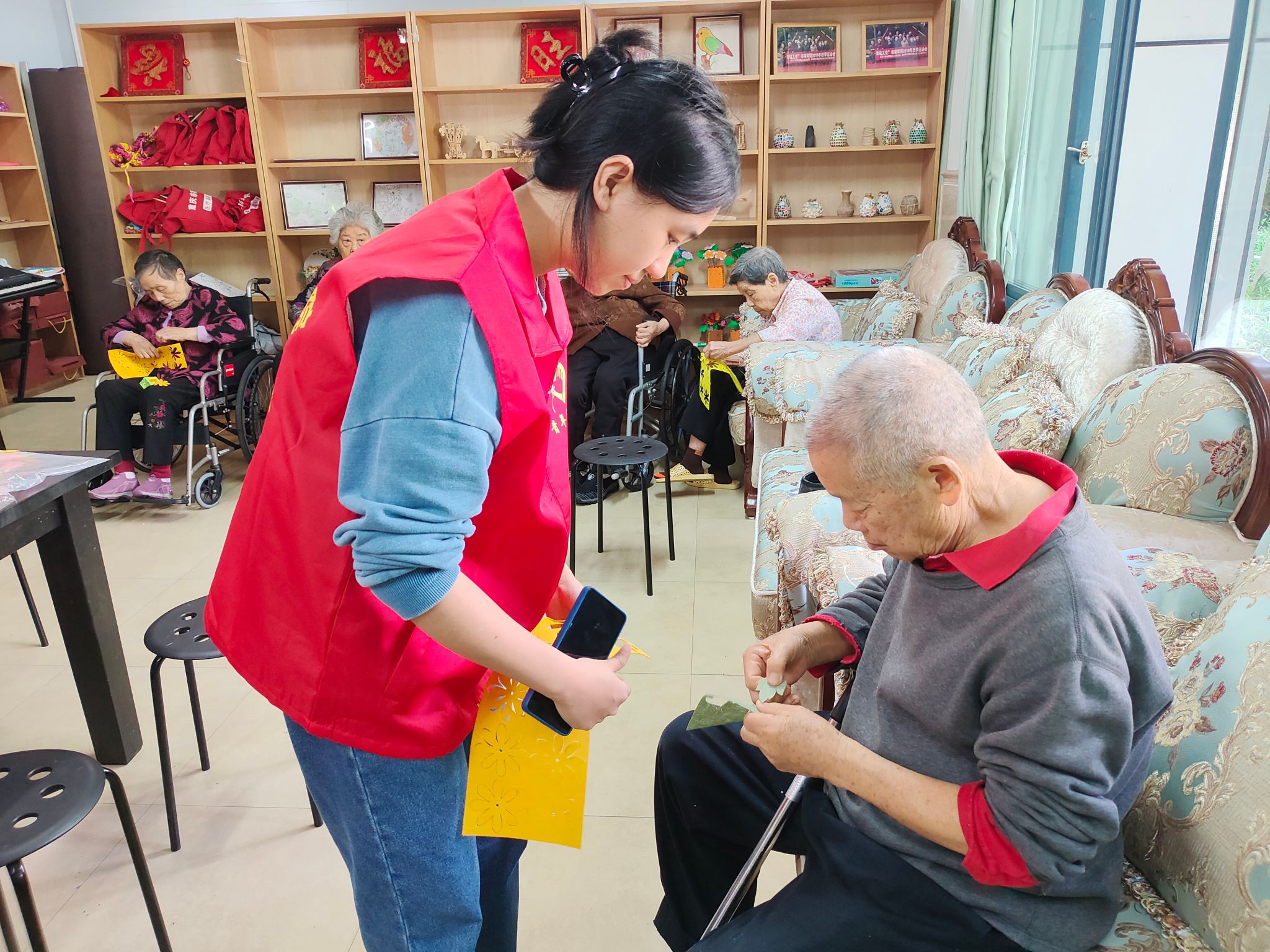 2024年4月20日,“光芒再放”挂念老兵志愿服务专项支队的志愿者们齐聚荣军院,在周六的阳光下,志愿者小伙伴们和老人们欢聚一堂。巧手编织希望,木雕传情,丝线连心,在谈笑风生间,一段段故事流传,传承智慧,编织记忆,这些手工艺品,不仅仅是物件,更是时光的印记,是心灵的歌唱。