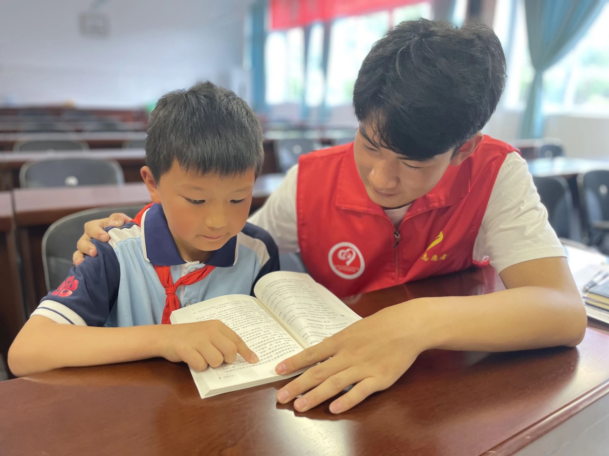 第四部分,结对阅读。捐赠仪式结束后,大学生志愿者与小学生朋友们进行了一对一结对阅读,为同学们定制必读书单,共读一本书,结下一份情。伴读活动提供了一种有效的方式,帮助同学们培养阅读习惯,同时互动式的学习方式可以促进同学们的思维能力和语言表达能力的提高。