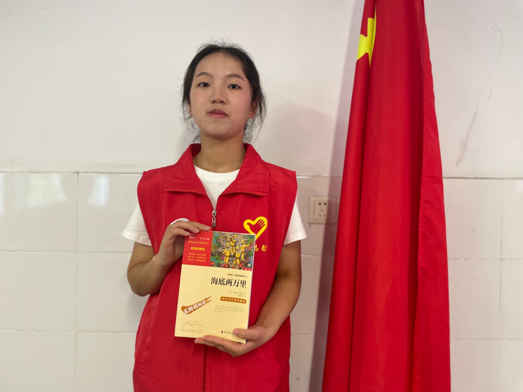 第二部分,好书分享。志愿者代表吴蔓同学给小朋友们分享阅读的乐趣和知识的奇妙,并结合自己的读书经历为少先队员们推荐了《海底两万里》,启发同学们对环境保护的思考,鼓励同学们一起探索未知的世界,勇敢地追求梦想;同时也让同学们在欢声笑语中感受到知识的力量和温暖的关怀。