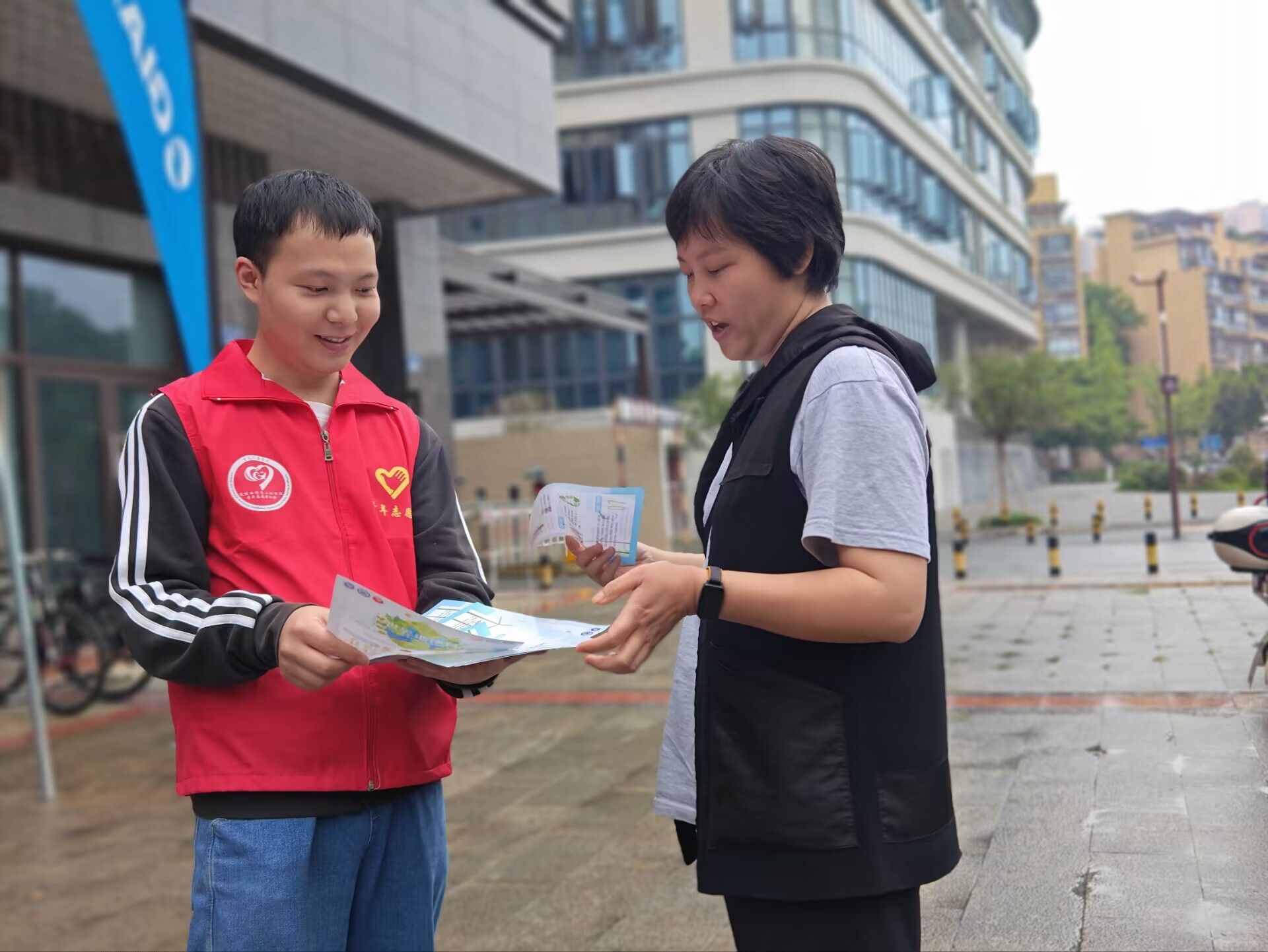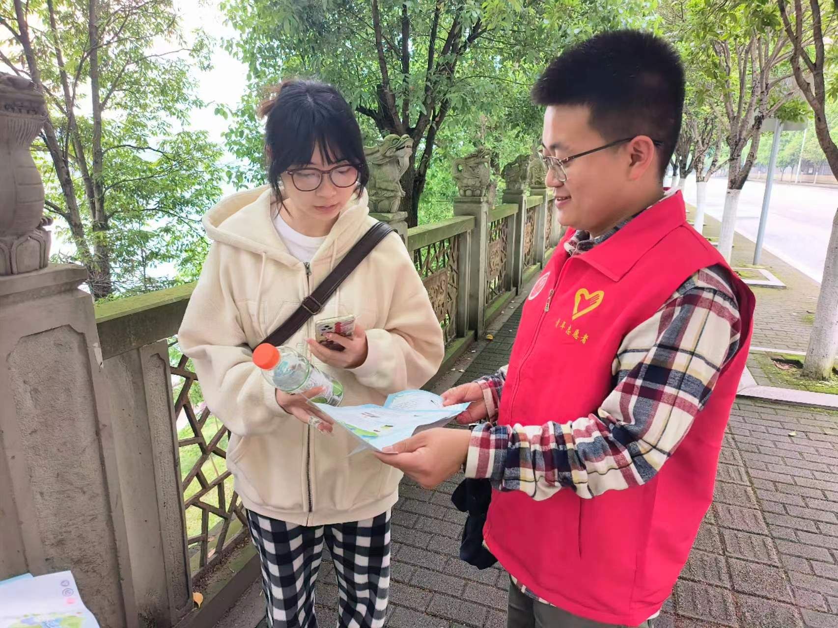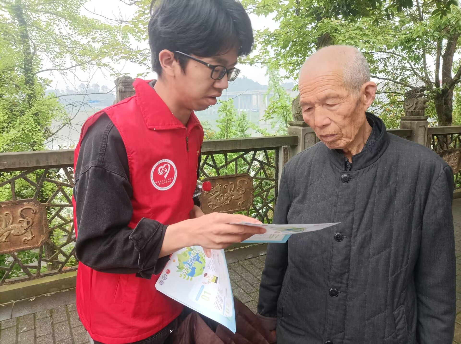 午后的涪江河畔,微风拂面,水波不兴。志愿者们身着红色志愿服,手持宣传单,热情地向每一位路过的群众介绍相关环保知识。其中,一位爷爷在接过宣传单后,驻足仔细阅读,并倾听志愿者耐心地的讲解。他表示原来保护环境并非遥不可及,每个人的小小行动都能为地球带来积极的变化。在后期也会身体力行,从小事做起,保护环境,爱护家园。