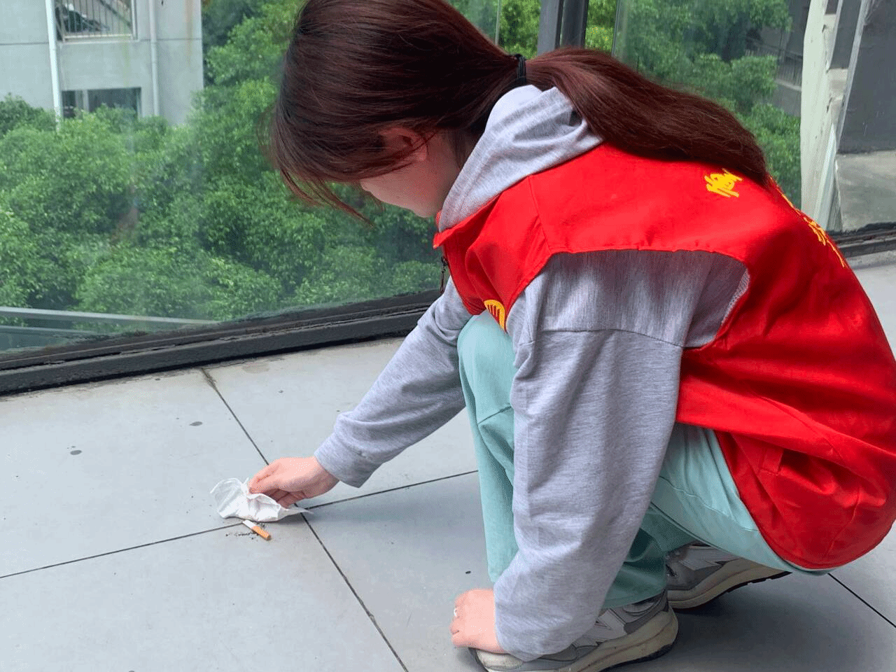 用爱唤醒希望,用心拒绝烟魔。志愿者们无私奉献,积极主动站出与吸烟者说“不”。在第八教学楼,志愿者们在天台、走廊、教室、厕所等场所巡查硝烟的痕迹,他们低声劝导吸烟人群、弯腰拾起扔在地上的烟头。志愿者们用他们的一言一行抵制着同学老师们的不良吸烟行为,用他们的一举一动展现着禁烟控烟的决心。在第八教学楼中,志愿者们的存在,让师生们有了良好的学习环境和健康的生活。