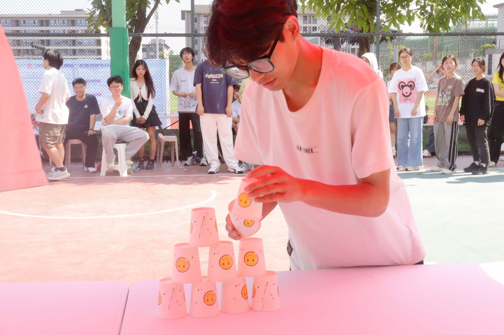 第一个游戏为“抢凳子”,每个队伍派4个人参与,音乐的响起,大家开始绕着凳子转圈,他们的步伐轻快而有序,但眼神中充满了期待和紧张,生怕自己被淘汰。音乐停止,有人欢笑、有人失望。第二个游戏是“纸杯叠叠乐”,而此游戏并不如想象中简单,有时纸杯塔会因为一个小小的失误而轰然倒塌,让大家都感到惋惜,但队员们并没有因此放弃,总能迅速重新开始,正如青协永不放弃的精神。第三个游戏是“你划我猜”,游戏开始,每组的四个代表竭尽全力地投入到表演中,或手舞足蹈,或做出夸张表情,甚至用上了各种声音效果,努力将词语的意思传达给同组成员。观众们也看得津津有味,不时发出阵阵笑声和掌声。在“一二三看这里”这个紧张刺激的游戏中,在场的每一位同学都全身心地投入,随着游戏节奏变快,同学们的反应速度也越来越快,每一次的及时动作都引发了一阵阵的惊叹与欢呼。