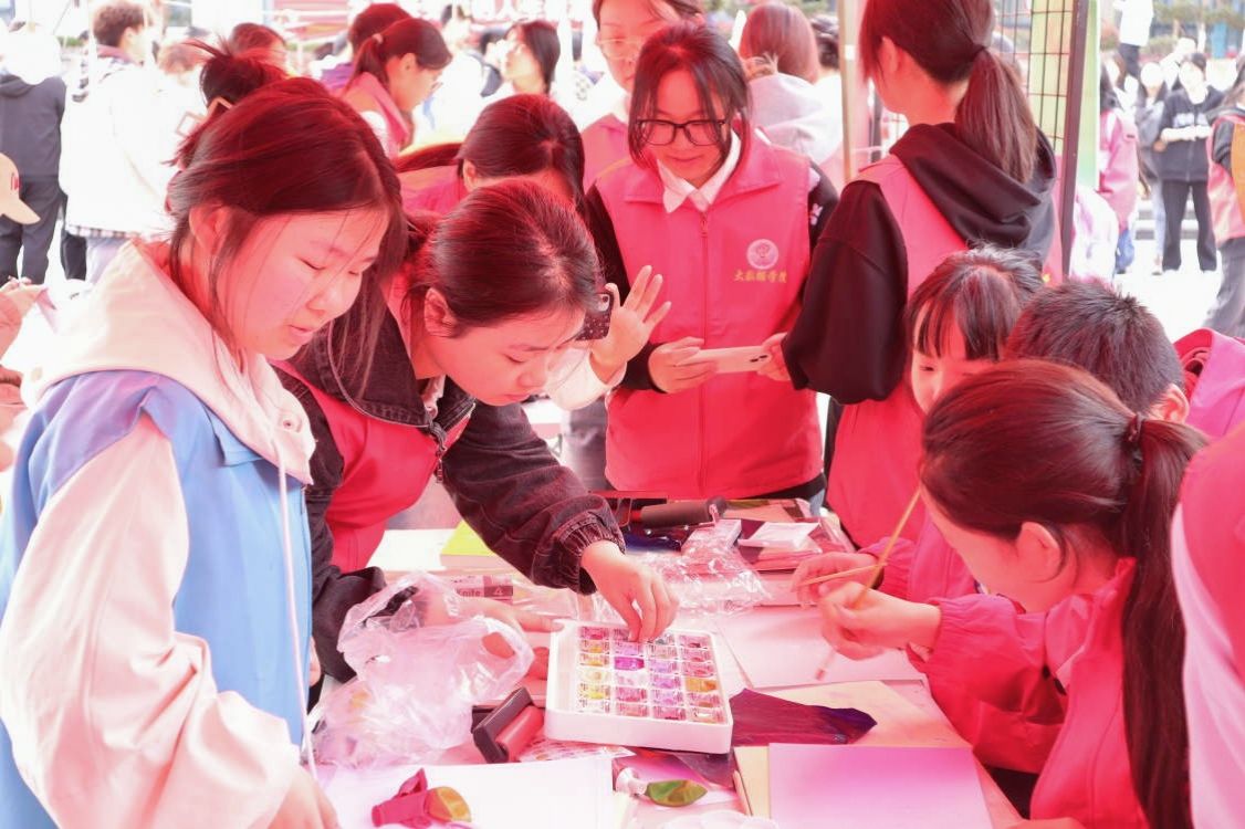 “小朋友,你们有过被人帮助的经历吗?”“我有!之前……”,图书馆广场前,在志愿者的带领下,小学生们加入到“恰青春·‘锋’华正茂”志愿文化集市活动中,参观体验移通校园的志愿服务文化展示,互动中,小朋友们了解雷锋精神、聆听雷锋的故事……自由活动时,小朋友们如一只只欢快的小松鼠,充满无尽的活力,三五成群地穿梭在摊位中。版画摊位前,刻刀与木板碰撞,非遗遇见童真;无“艾”摊位前,色彩和线条表达出他们的理解和感受;废物利用制作花瓶,美丽与环保同行。