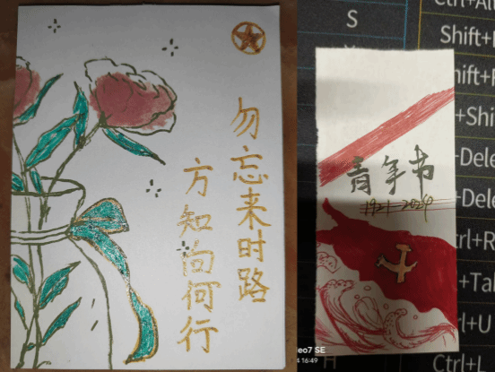 青春五月,丹墨书香。方寸书签,如一面镜子,窥千年文化,映百态人生。展卷读书之余,制作精美的艺术书签,不但可以标记阅读进度,更能为读书平添许多兴致。在制作书签的过程中,同学们深入了解了五四精神的内涵,将其融入创作的每个细节之中。一枚枚精美的书签,承载着同学们对五四历史的敬意,对五四精神的理解。他们以独特的设计、丰富的色彩,展现了新时代青年对五四精神的感悟与传承。“方寸之地,巧手筑艺”,让浓浓的五四精神跃然于小小的书签上。