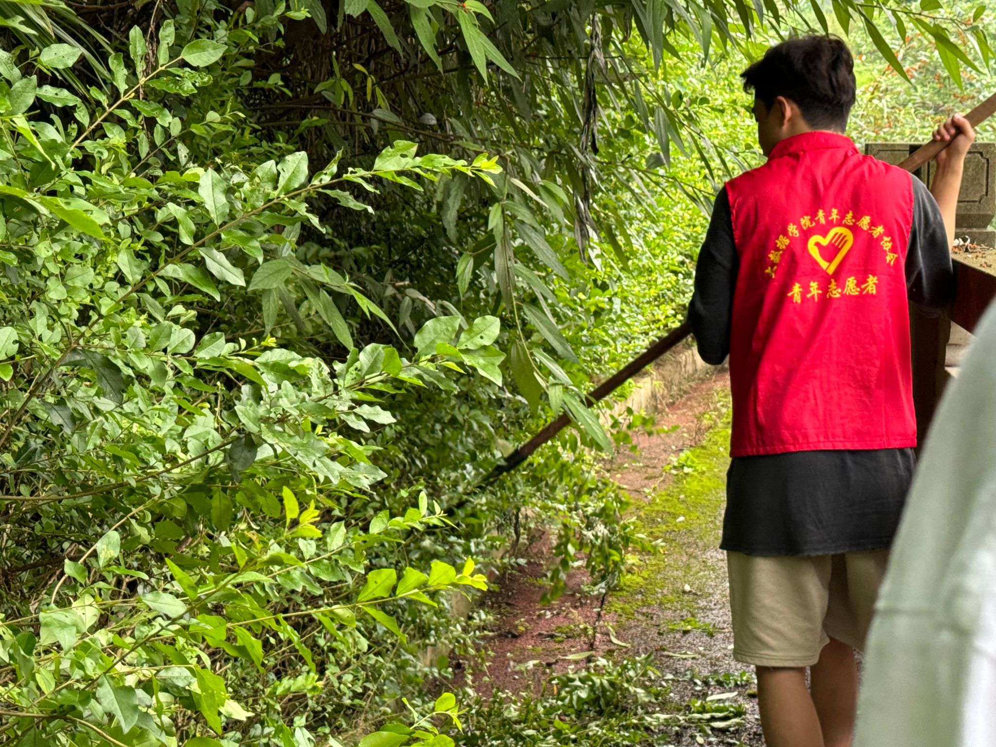 志愿者们身穿醒目的红马甲,仿佛一团团燃烧的火焰,在碧绿的田野间跳跃。志愿者们干劲高涨,他们被分为两组,一组负责河岸左侧的清理工作,另一组则负责右侧的,他们手持垃圾袋和捡拾钳子,不放过任何一片废纸、一个塑料袋。随着时间的推移,阳光逐渐变得炽热,空气中弥漫着夏日特有的闷热和湿润,但志愿者们坚持着,他们一次次弯腰,一次次挥动镰刀,汗水浸湿了红马甲,也浸湿了他们的心灵。
