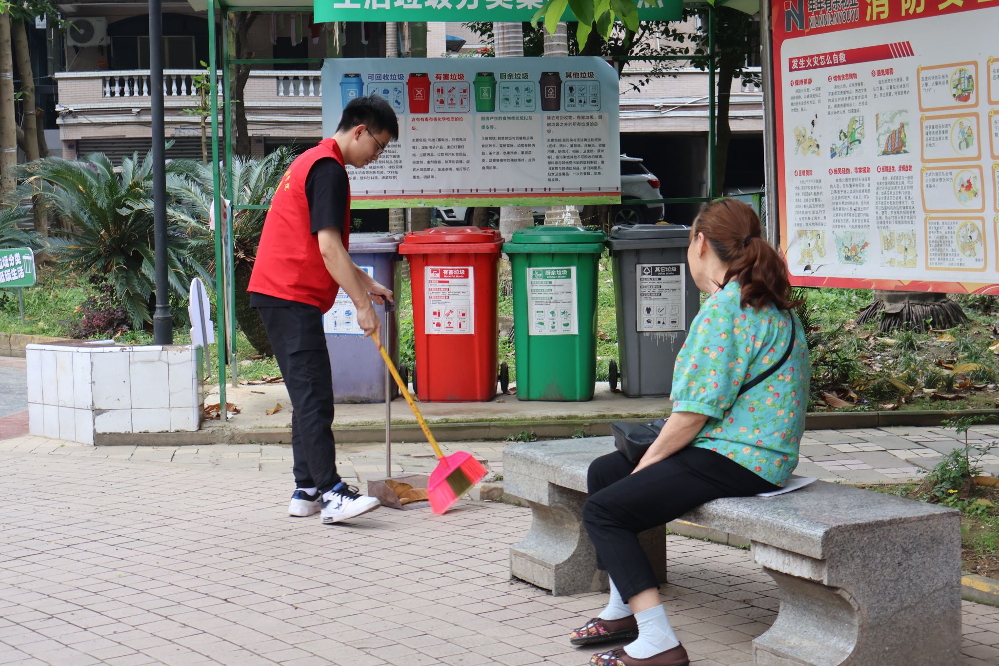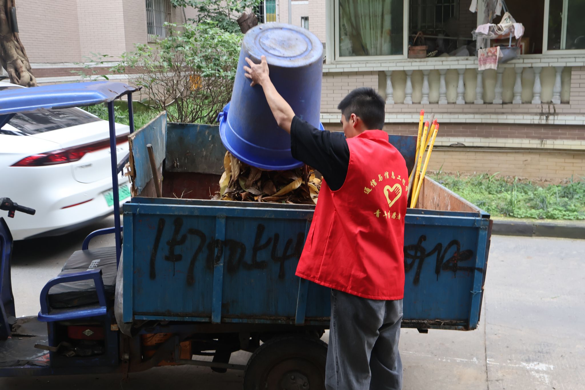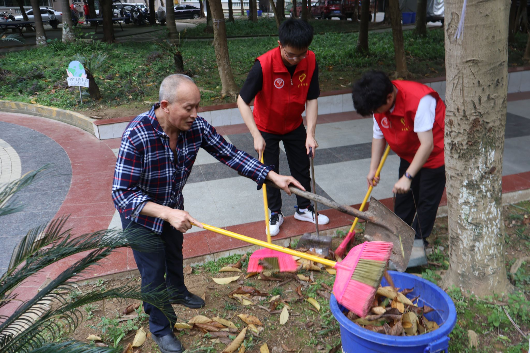 志愿者们早早地集结完毕,身穿统一的志愿服,手持清洁工具,分工明确,带着不怕困难的精神,共同走进社区,两两搭配分别负责清扫楼道和整理小区绿化带。楼道内的志愿者负责擦拭公共设施,清理着垃圾和杂物,楼外的志愿者负责整理绿化带,清除社区各处的小广告,增添社区形象。很快,社区便焕然一新,街道变得干净整洁,墙角的蜘蛛网不知所踪,公共设施焕然一新,绿化带也变得井然有序。