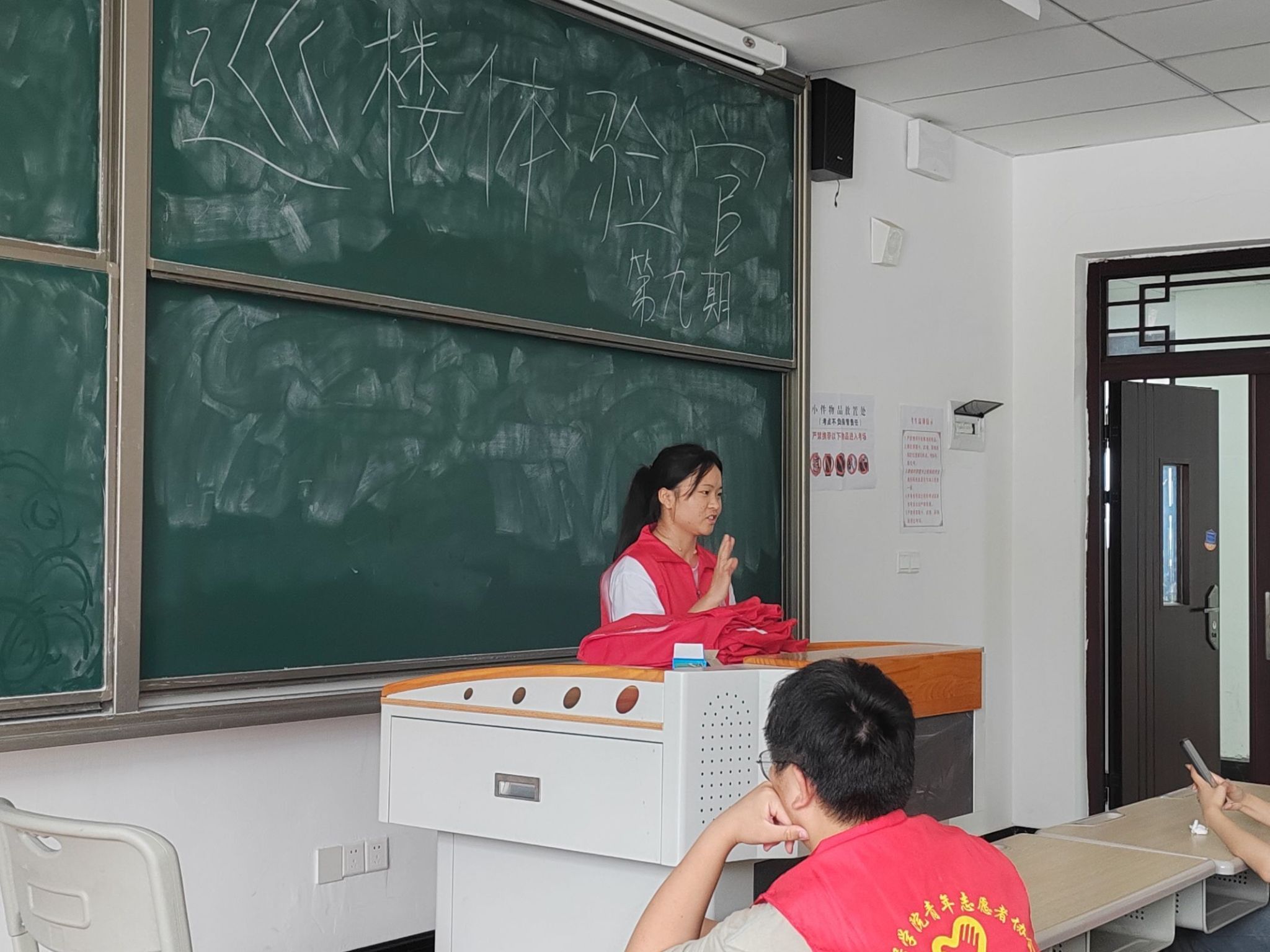 在活动开始前十分钟,工作人员组织大家陆陆续续到达指定的集合地点——仁者楼404。在12:30时,准时对人员进行清点,同时负责人讲解活动的相关注意事项。比如:如何正确穿戴红马甲、如何记录失物的相关细节以及对全体人员进行分组。将他们合理的分配为四组由工作人员带队前往相应的巡楼地点,分工合作,提高效率,在活动的过程中同时为他们解答疑惑。