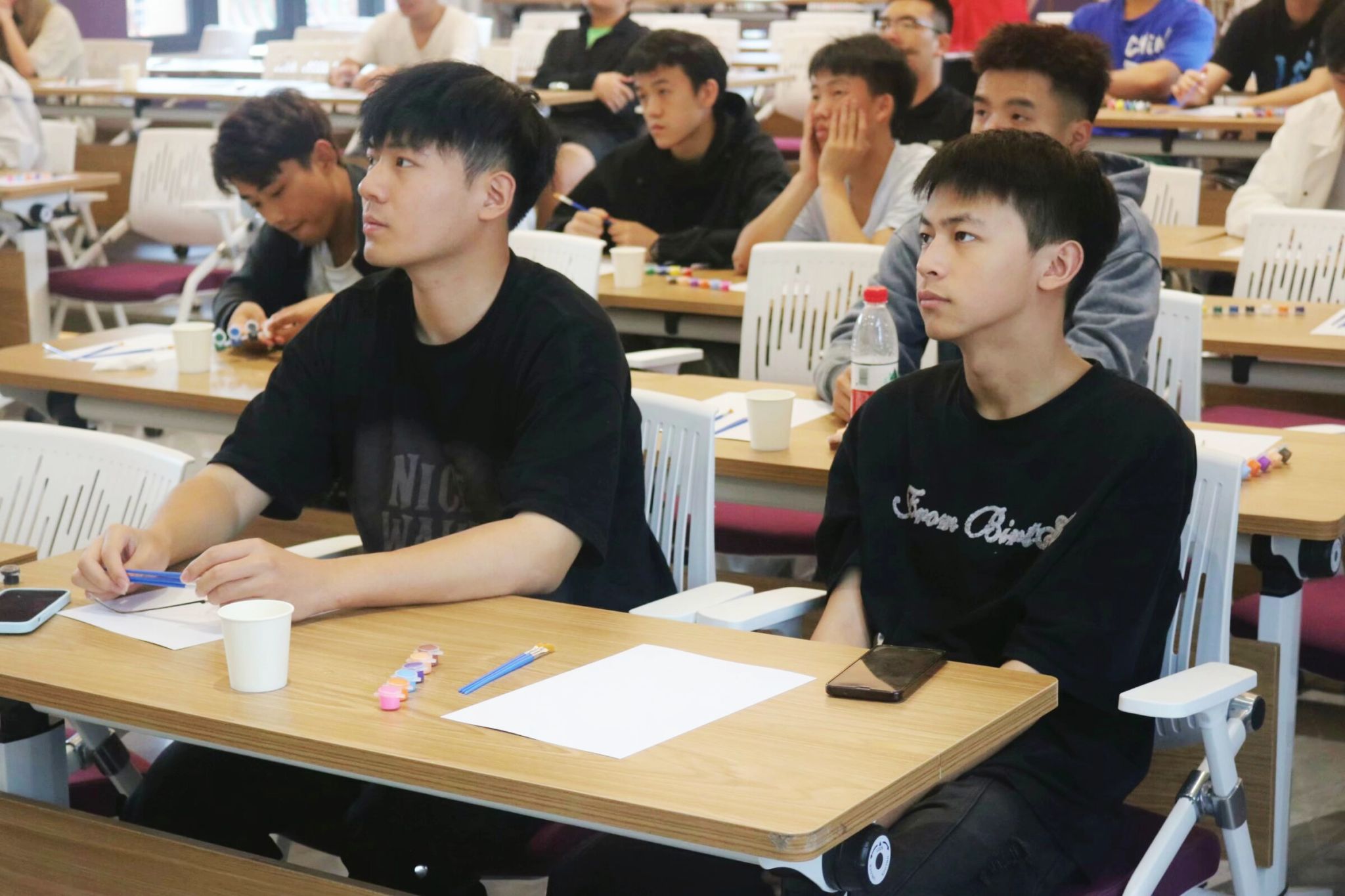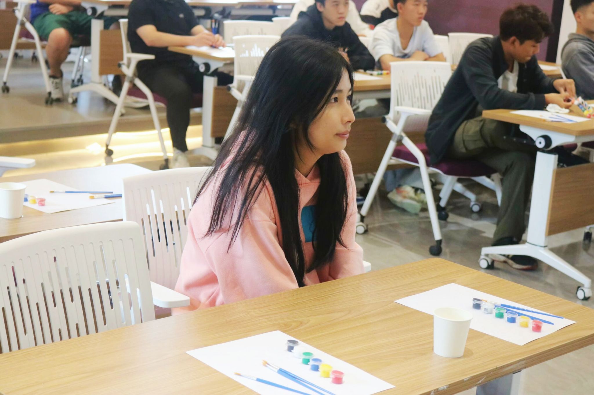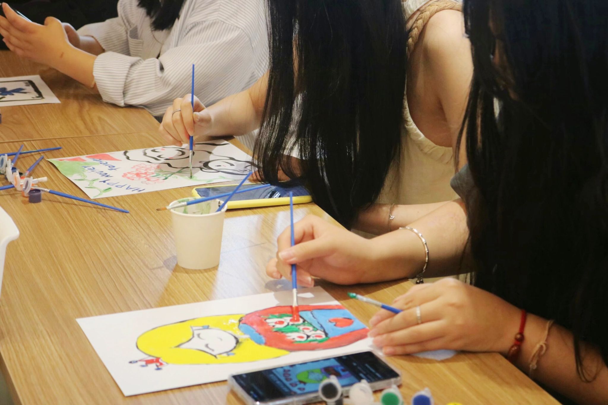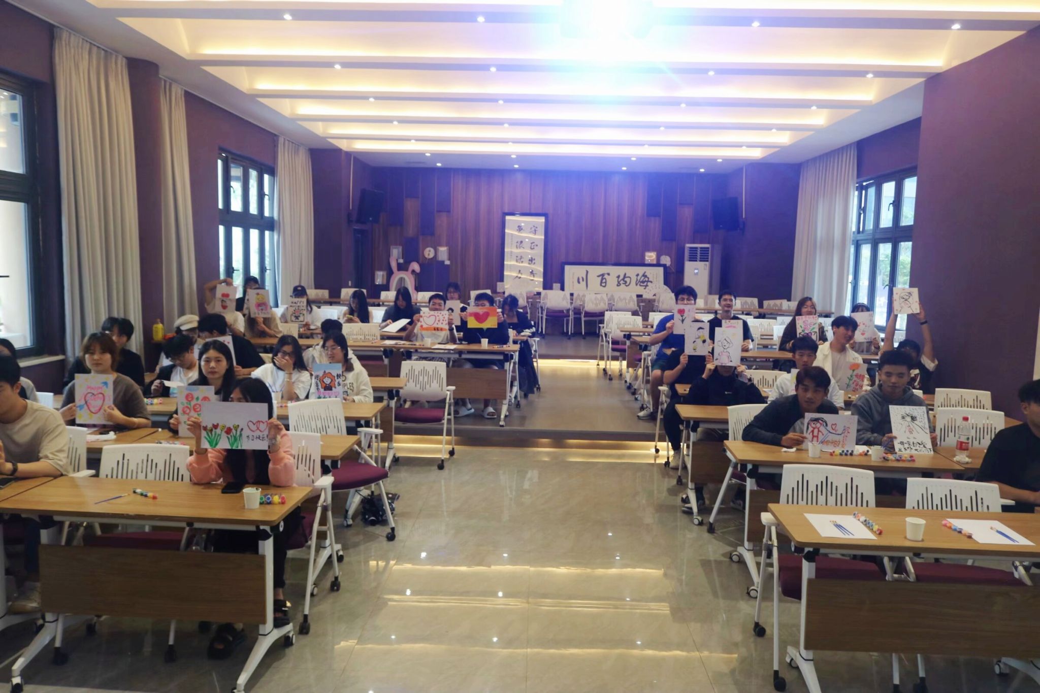 活动伊始,同学们陆续入座,工作人员为同学们分发了A4纸,在按照要求填写好名字和学号后,工作人员播放了一段母亲节短片,同学们全神贯注地观看。影片结束后,不少同学都潸然泪下,将自己的感受绘在纸上,以笔挥墨,绘出爱的模样。浓浓的爱意,弥漫在功能室中,即使与母亲相隔万里,那颗曾经一起跳动过的心脏,身上流淌着的血液都在述说对她的思恋。