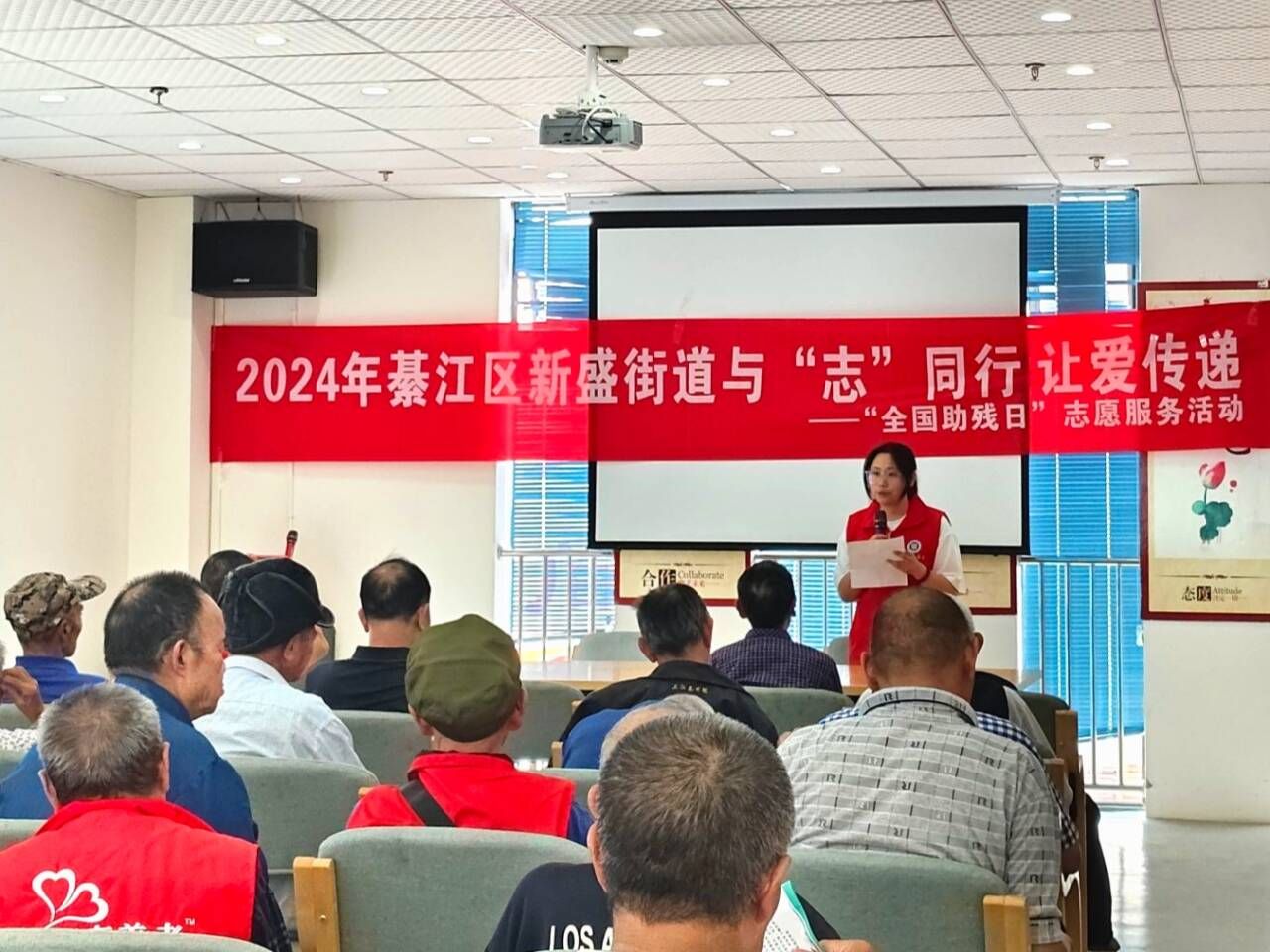在五月这个充满温情的季节里,为了进一步弘扬尊老爱幼、助残扶弱的社会风尚,“爱不释手”关贫助残志愿服务专项支队志愿者携手新盛街道新时代文明实践所,于5月17日,在新盛街道四坪村渝馨家园成功举办了一场主题为“与‘志’同行,让爱传递”的“全国助残日”志愿服务活动。