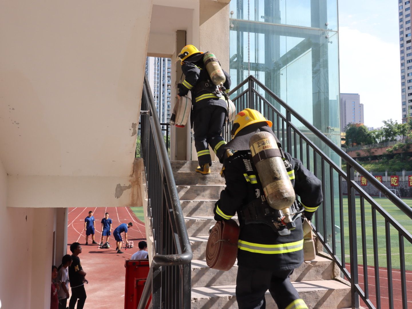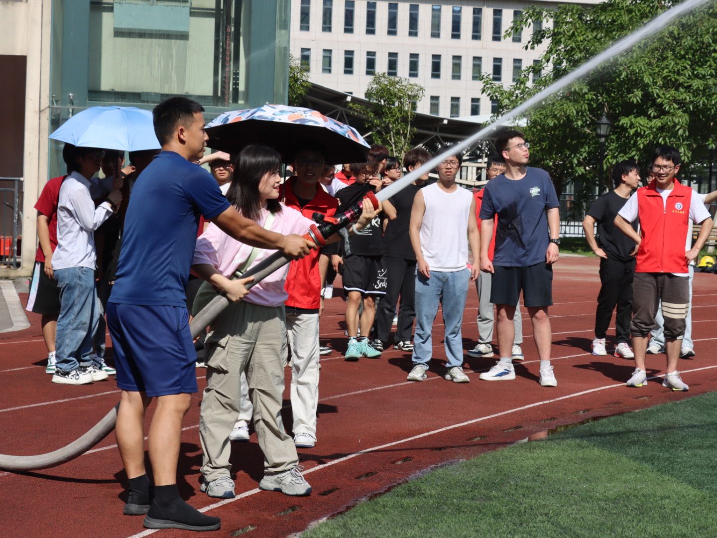 “沉浸式”体验消防战斗服救援场景。志愿者穿上沉重的消防战斗服,带上安全头盔,手提水带与水枪,奔向高达10楼的灾情地点;进行百米折返跑救援物资传递,运输煤气罐,假人等。让体验场景的同学们真切的感受到了消防训练的不易与艰辛,敬佩之情在此刻达到顶峰。