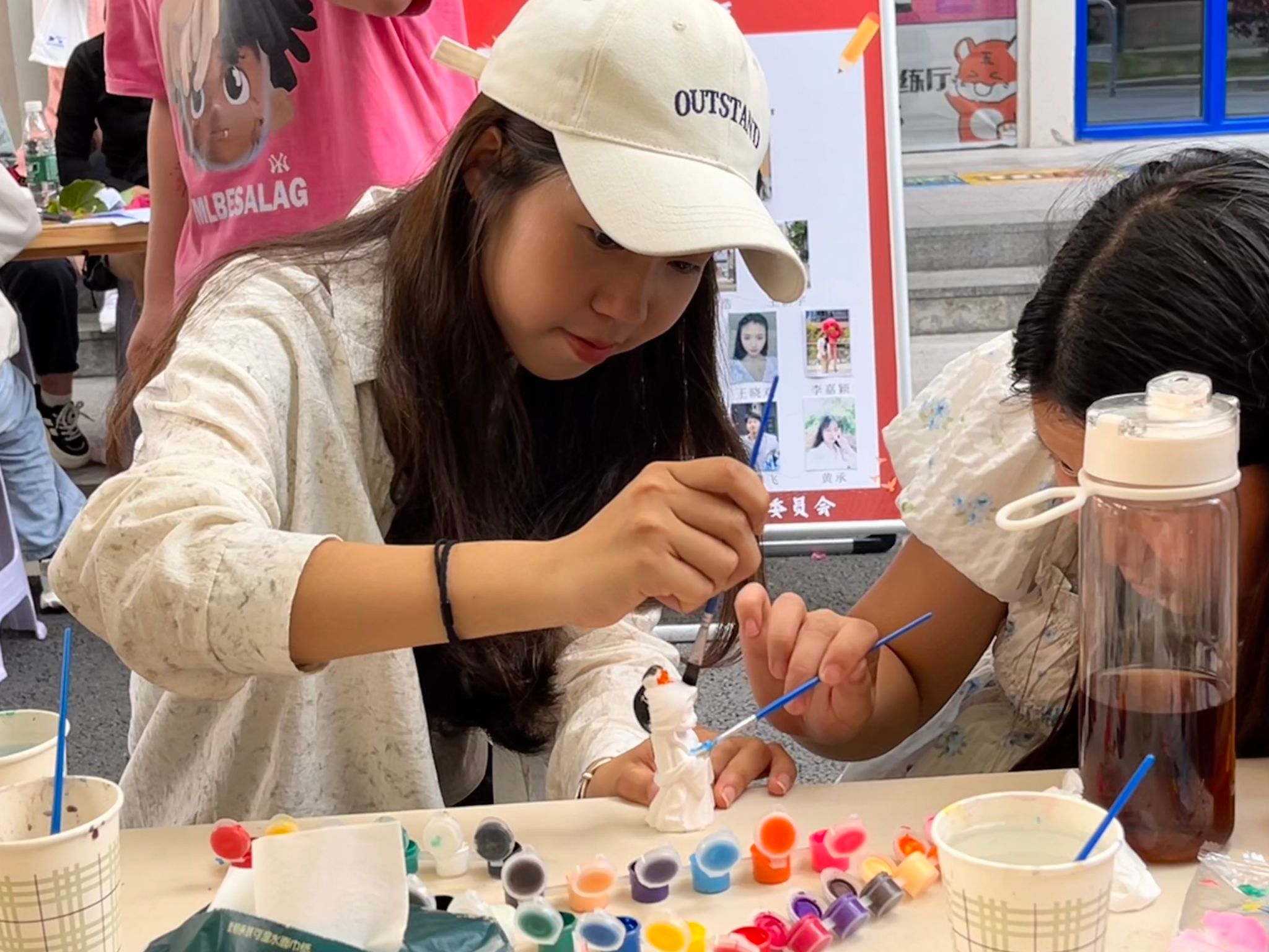 “水墨丹青画,疏疏浅浅人。檐落花开早,尽在一心身。”以古风石膏娃娃和油纸伞为载体,用画笔将中国传统特色文化灌注在其中,拉近参与者与中国传统文化的距离,培养审美能力和艺术修养,加强其创新精神和动手能力。信息安全学院团总支青年志愿者协会携手绘墨传承志愿宣讲团联合“青马工程”中阶班6班,于5月17日在玉棠书院棠人街开展“古韵今风·彩绘青马”古风石膏娃娃和油纸伞上色活动。