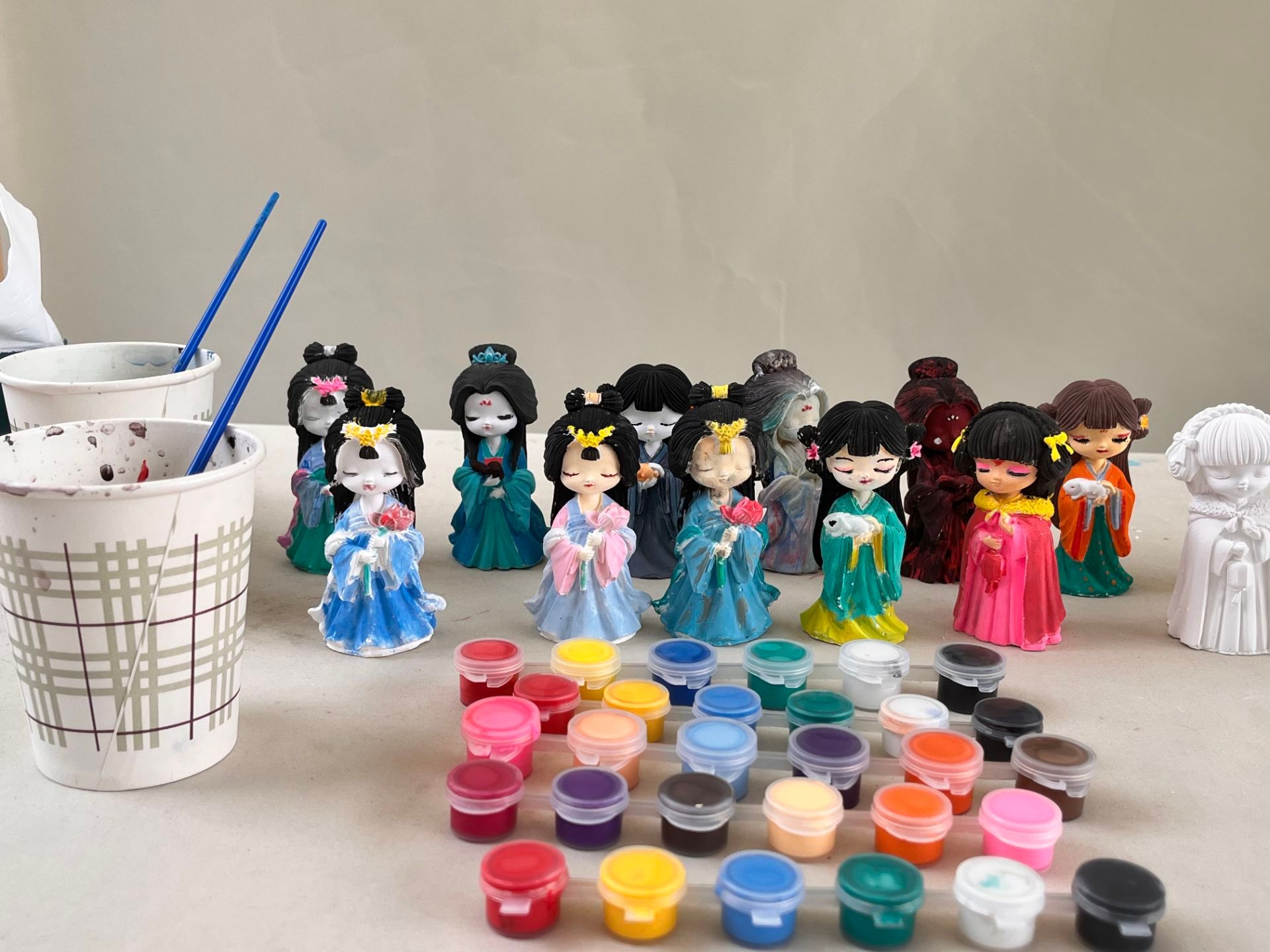 活动现场,工作人员引导参与者领取绘画工具和绘画素材,参与者凭借对中国文化的了解,用斑斓的色彩填补着每一个空白,手中的画笔仿佛化身为魔法笔,将白色的娃娃逐一描绘得栩栩如生,仿佛注入了灵魂。而那一把把原本素净的油纸伞,在参与者的精心绘制下,宛如盛开的花朵,绽放出五彩斑斓的美丽。