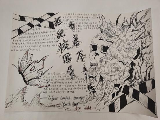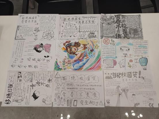 在活动现场,各位参与者们以拒绝校园贷为主题,通过绘制手抄报的方式将校园贷的定义、分类、基本形式等基础知识。他们结合典型案例分析了校园贷诈骗的主要方式及手段,提醒大家保护个人信息,注意个人隐私的保护与管理。养成良好的上网习惯,不随意下载来源不明的软件或链接,提高警惕,以防上当受骗。